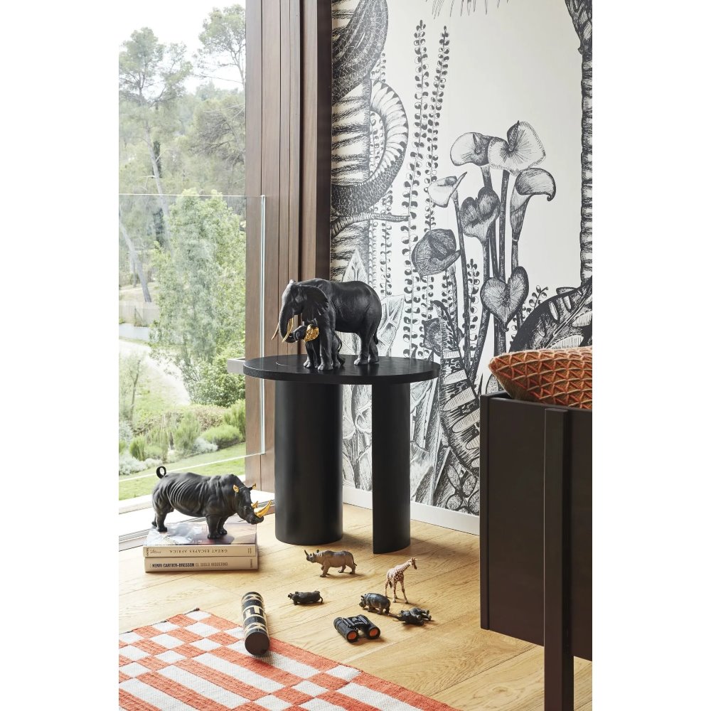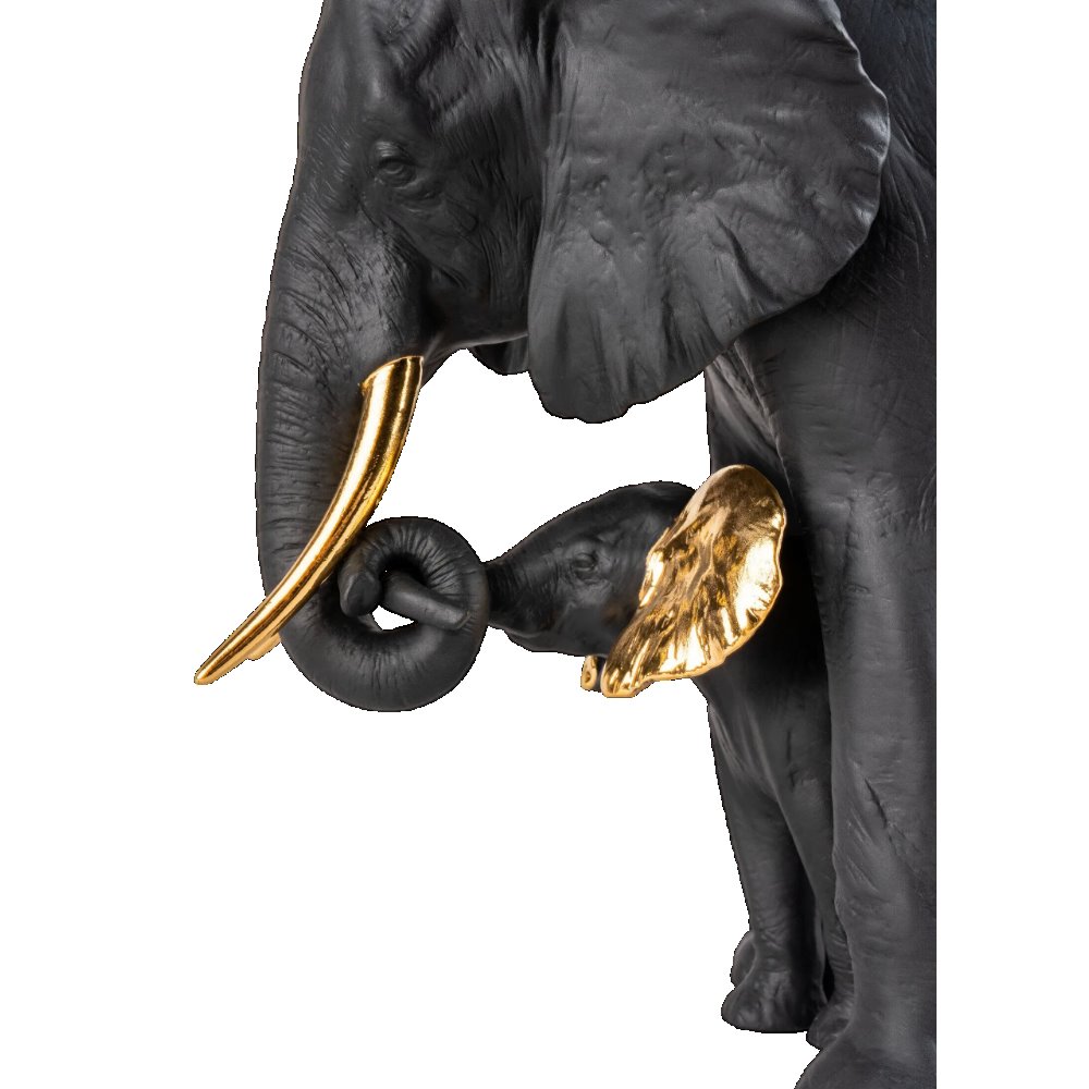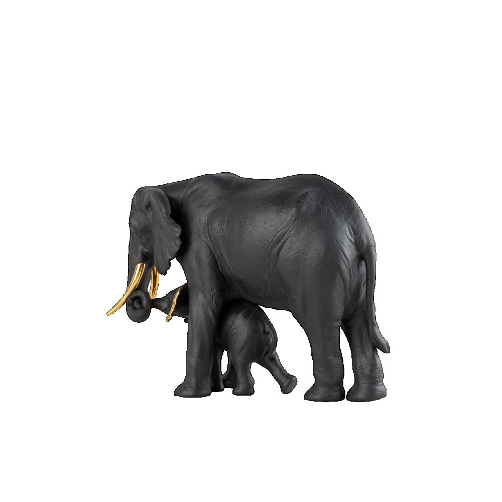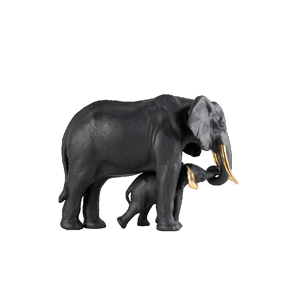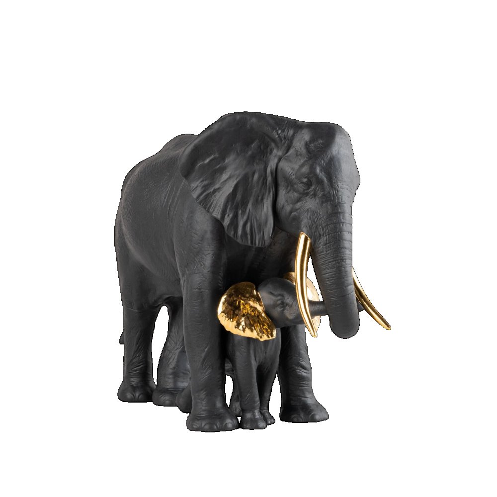 Una tenera storia con protagonista una elefantessa e il suo cucciolo rappresenta una delle creazioni della collezione Boldblack, caratterizzata da una originale decorazione. Due tonalit decise ed eleganti come il nero e l'oro si combinano per conferire al pezzo un aspetto attraente. realizzato in porcellana opaca decorata in nero con dettagli in oro lucido.