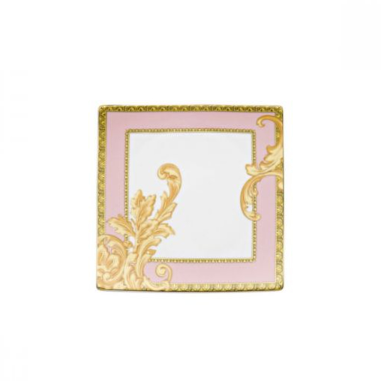 Diese wunderschöne Versace-Dekoration heißt Byzantinische Träume. Es wird aus feinstem Porzellan hergestellt, wodurch ein Stil entsteht, der am besten als luxuriös und glamourös beschrieben werden kann. Die wichtigste Farbe dieses Objekts ist Pink. Verspielte Blumendekorationen machen dieses Stück zu einem Blickfang auf jedem Tisch oder jeder Arbeitsplatte. Material: Porzellan. Abmessungen 15x15 cm