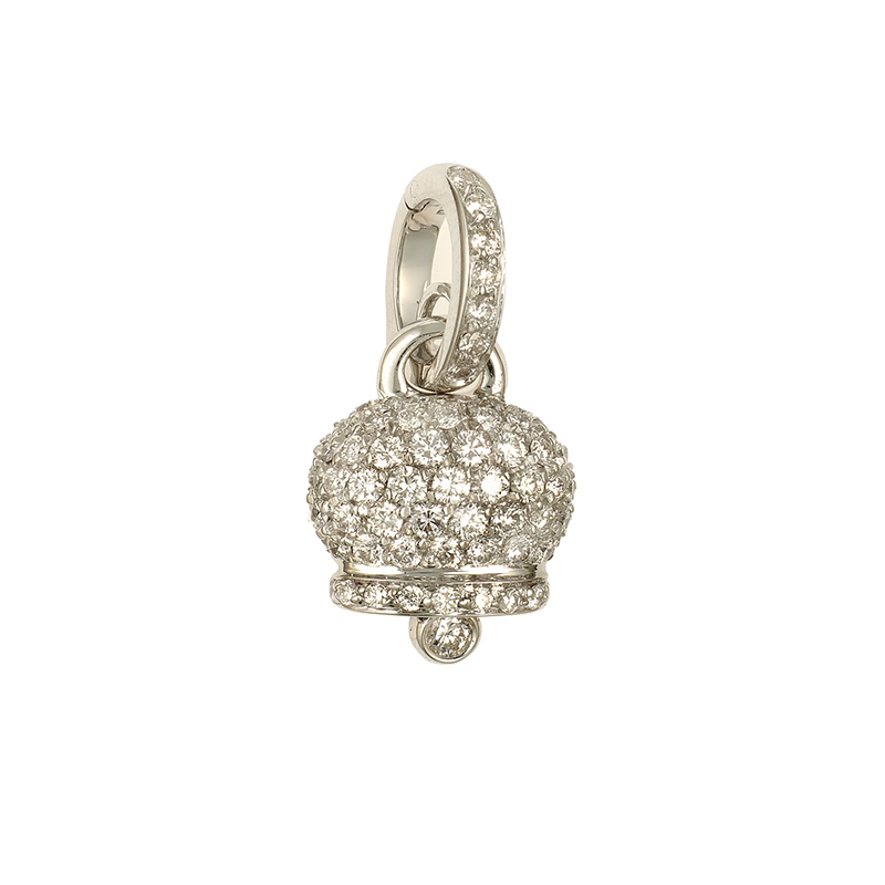 Ciondolo Chantecler Camapanelle in oro bianco 18 carati e diamanti bianchi taglio brillante.