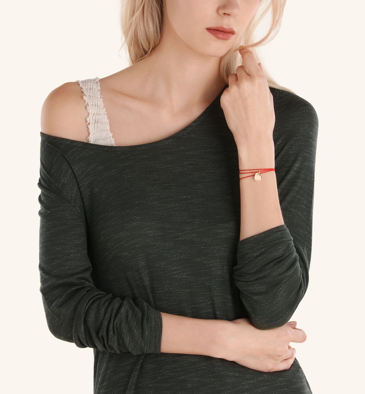 Ciondolo cuore in oro rosa 9K - modello grande. Cordino nero incluso.