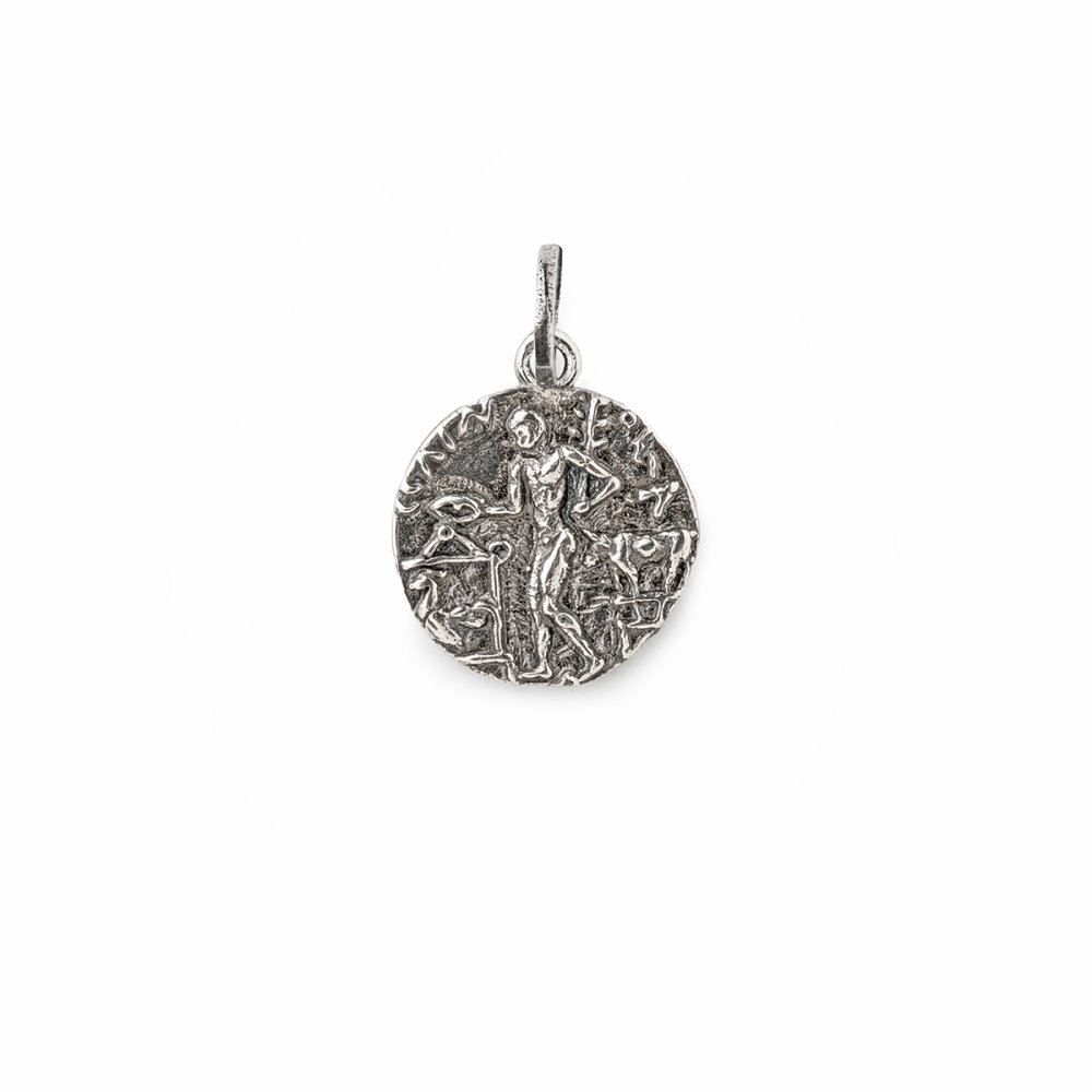 Pferde und Gottheiten, Gesichter und Gravuren: So entstanden Anhänger, die von antiken griechischen Münzen inspiriert waren. Die Goldschmiede beginnen mit Entwürfen, die an die damalige Zeit erinnern, um eine Reihe einzigartiger Juwelen zu schaffen, die mit sorgfältiger Arbeit und Geschicklichkeit hergestellt werden. Ein von einer Tetradrachme inspiriertes Schmuckstück, das auf der Vorderseite Artemis mit der Quadriga und Apollo beim Bogenziehen darstellt. auf der Rückseite ist die Personifikation des Flusses Selinus dargestellt, der im Begriff ist, ein Opfer zu bringen. Schmuckstück aus 925er Silber mit Rutheniumbeschichtung. Code 20001123