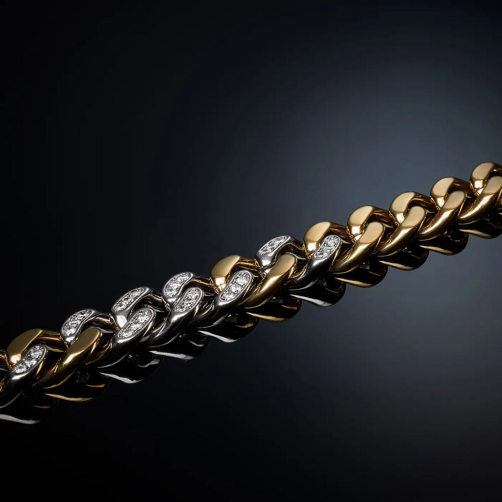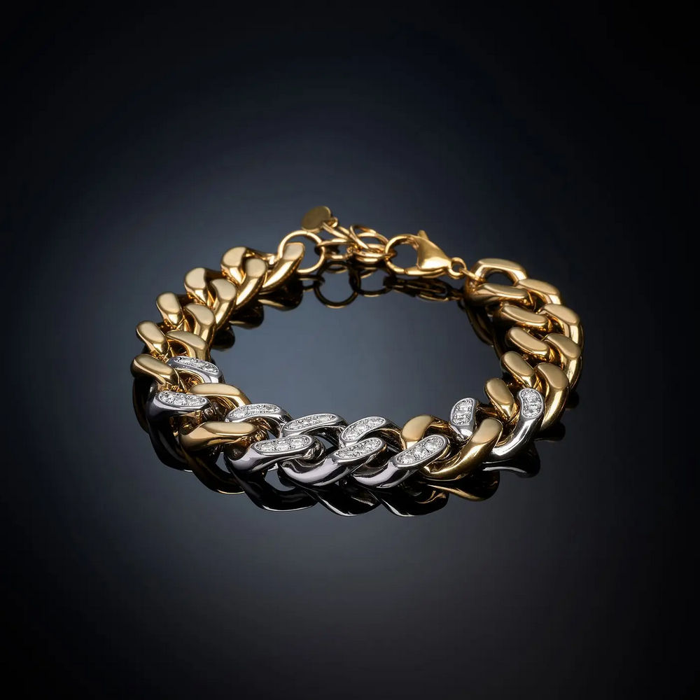 Bracciale Donna, collezione Chain Chiara Ferragni. Bracciale catena groumette placcato oro giallo 18 kt e centrale silver con pavè di zirconi bianchi.