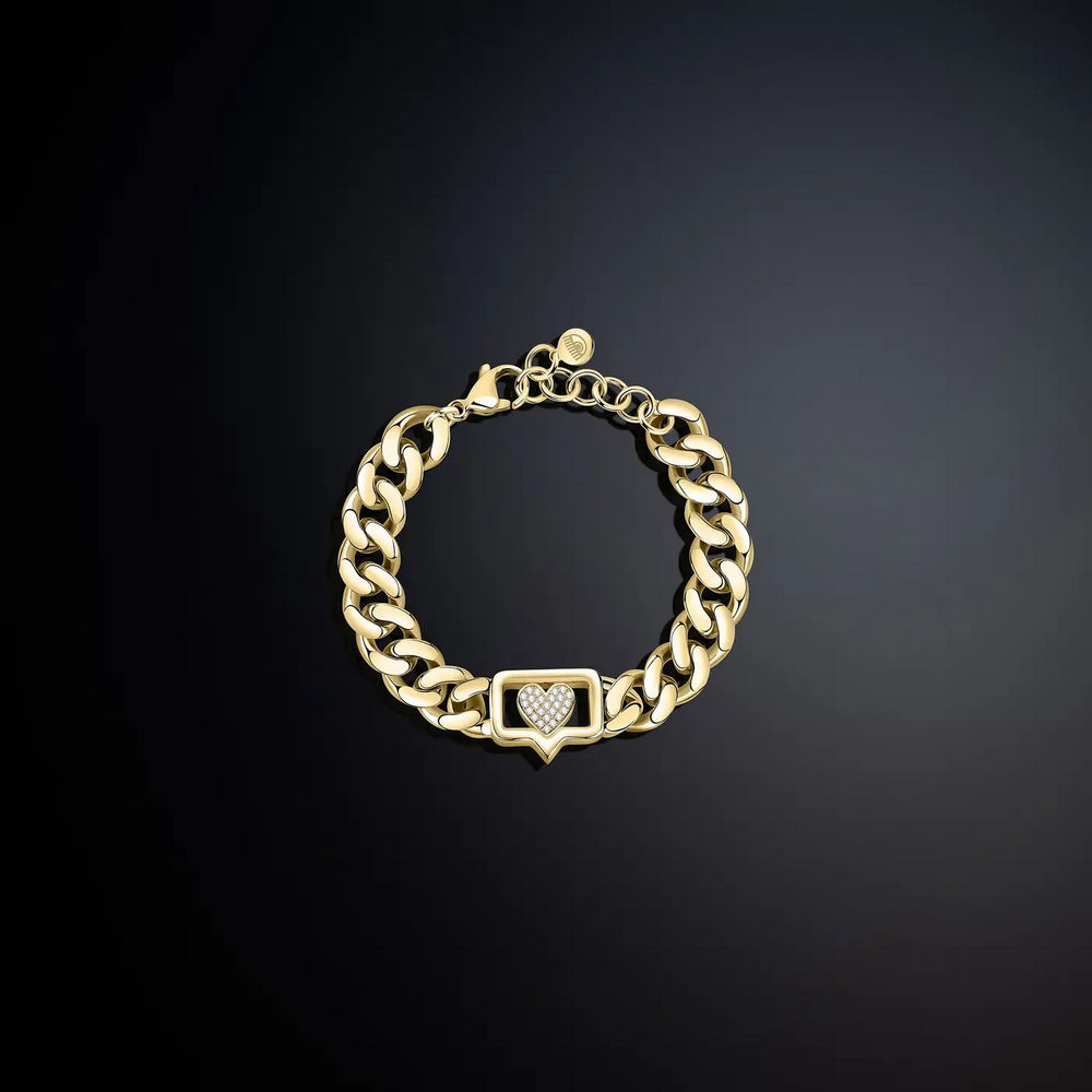 Bracciale Donna, collezione Chain Chiara Ferragni. Bracciale catena groumette placcato oro giallo 18 kt e centrale con logo pavè di zirconi bianchi.