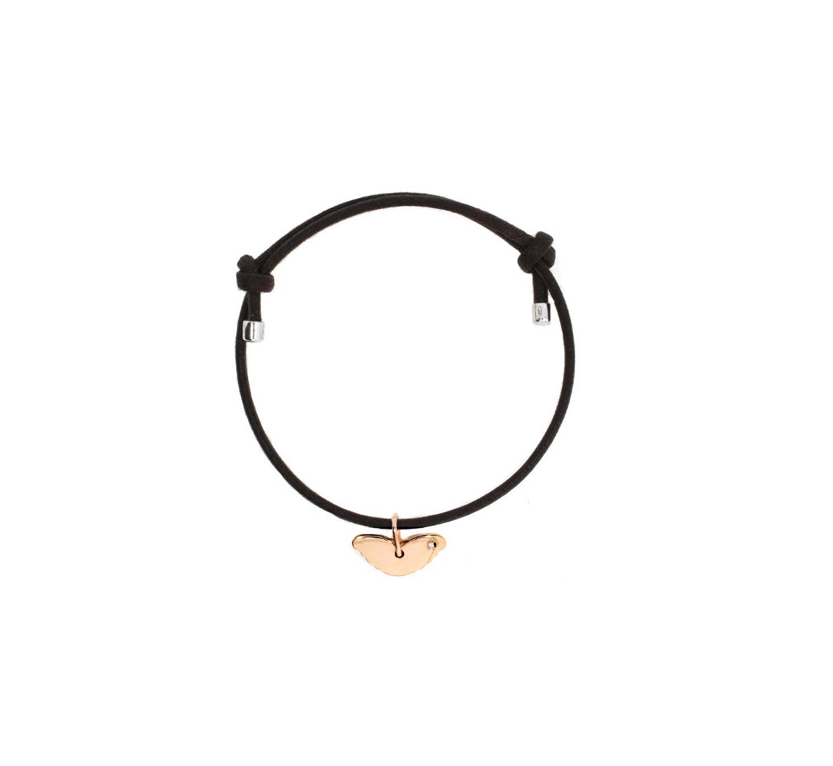 Mein erstes Armband mit 9 Karat Roségoldschnur und Charm und 0,01 Karat Diamant.