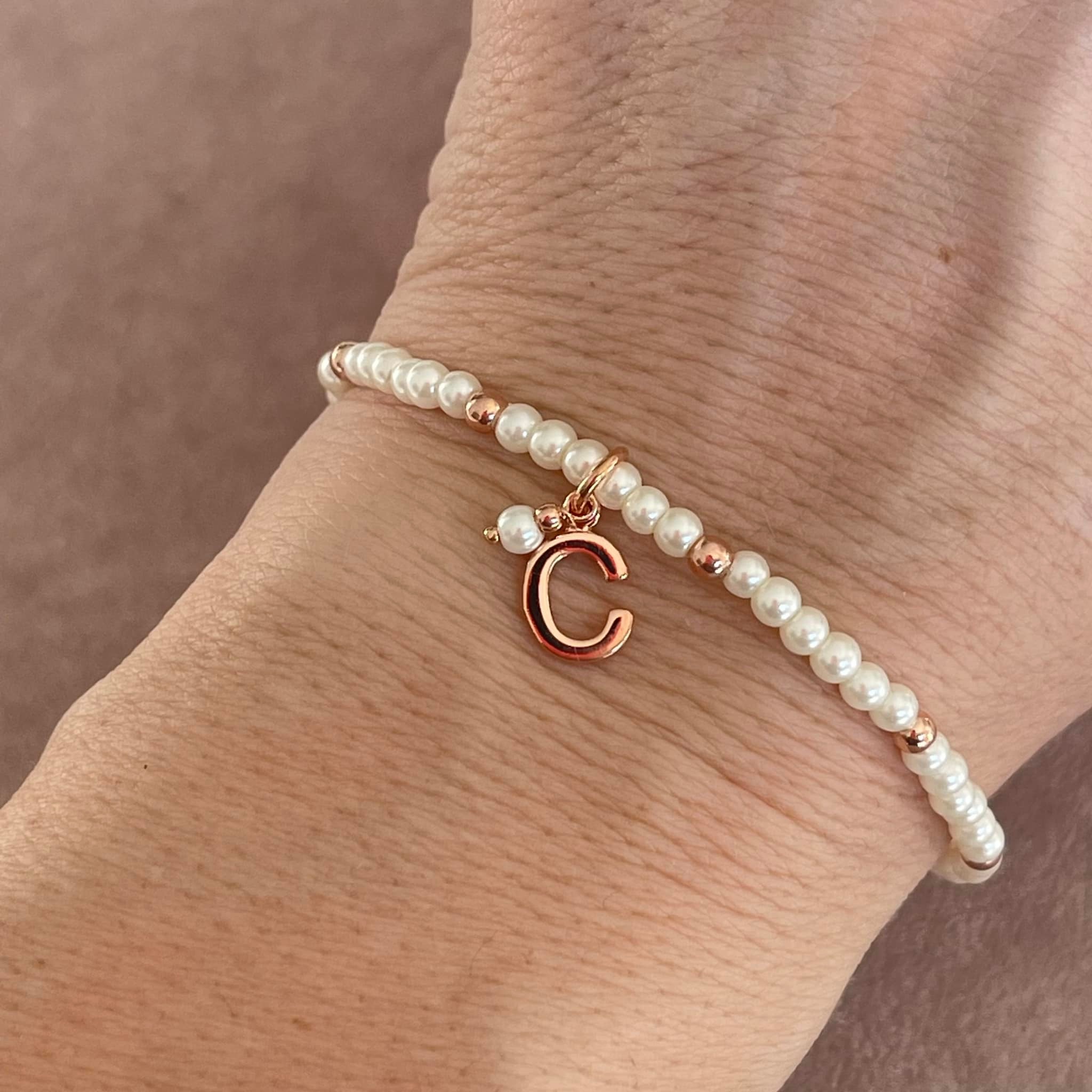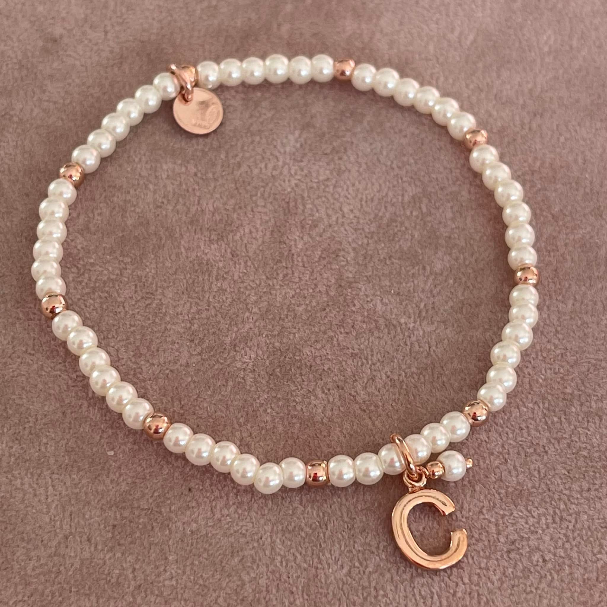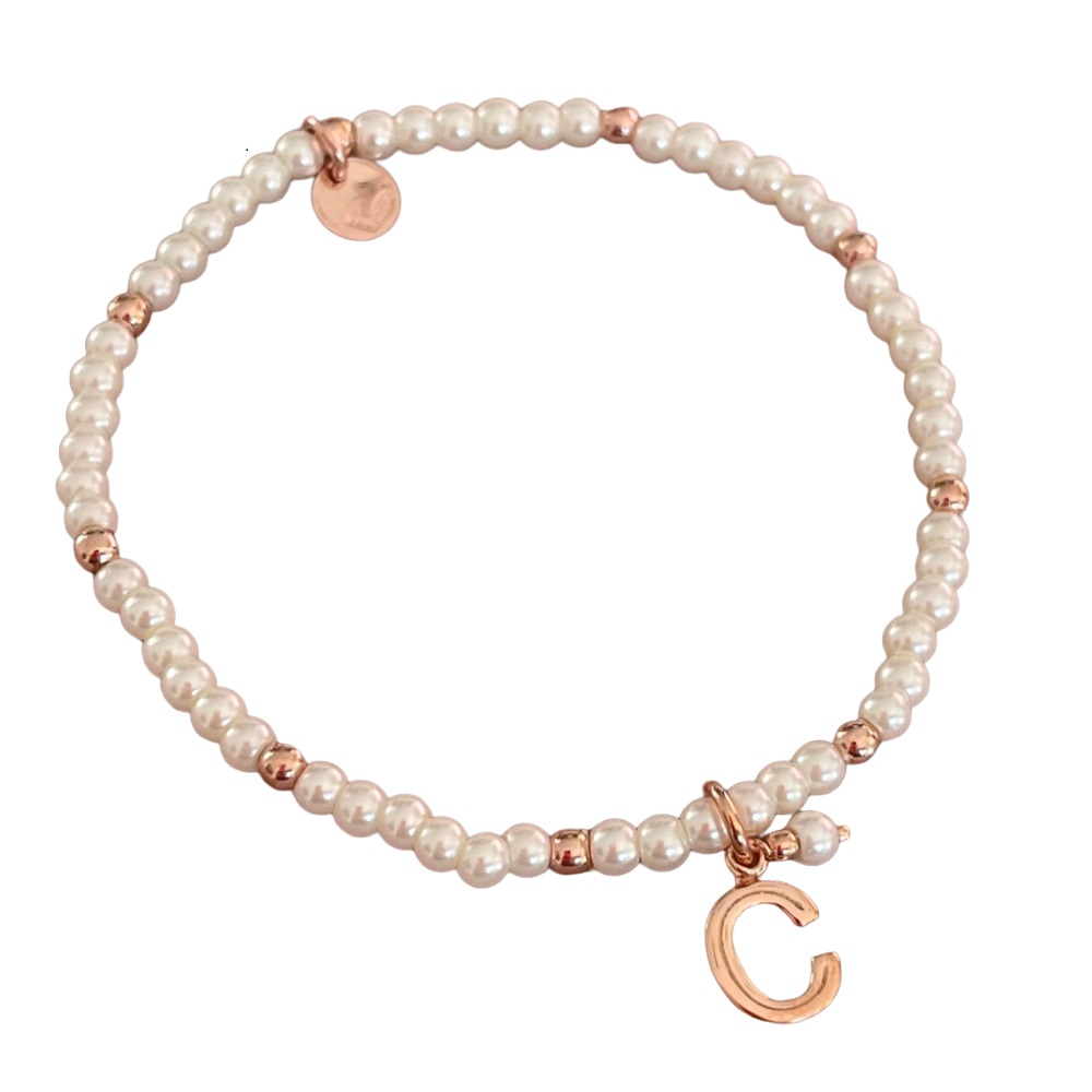 Braccialetto Elastico con Perle e Palline - Lettera C