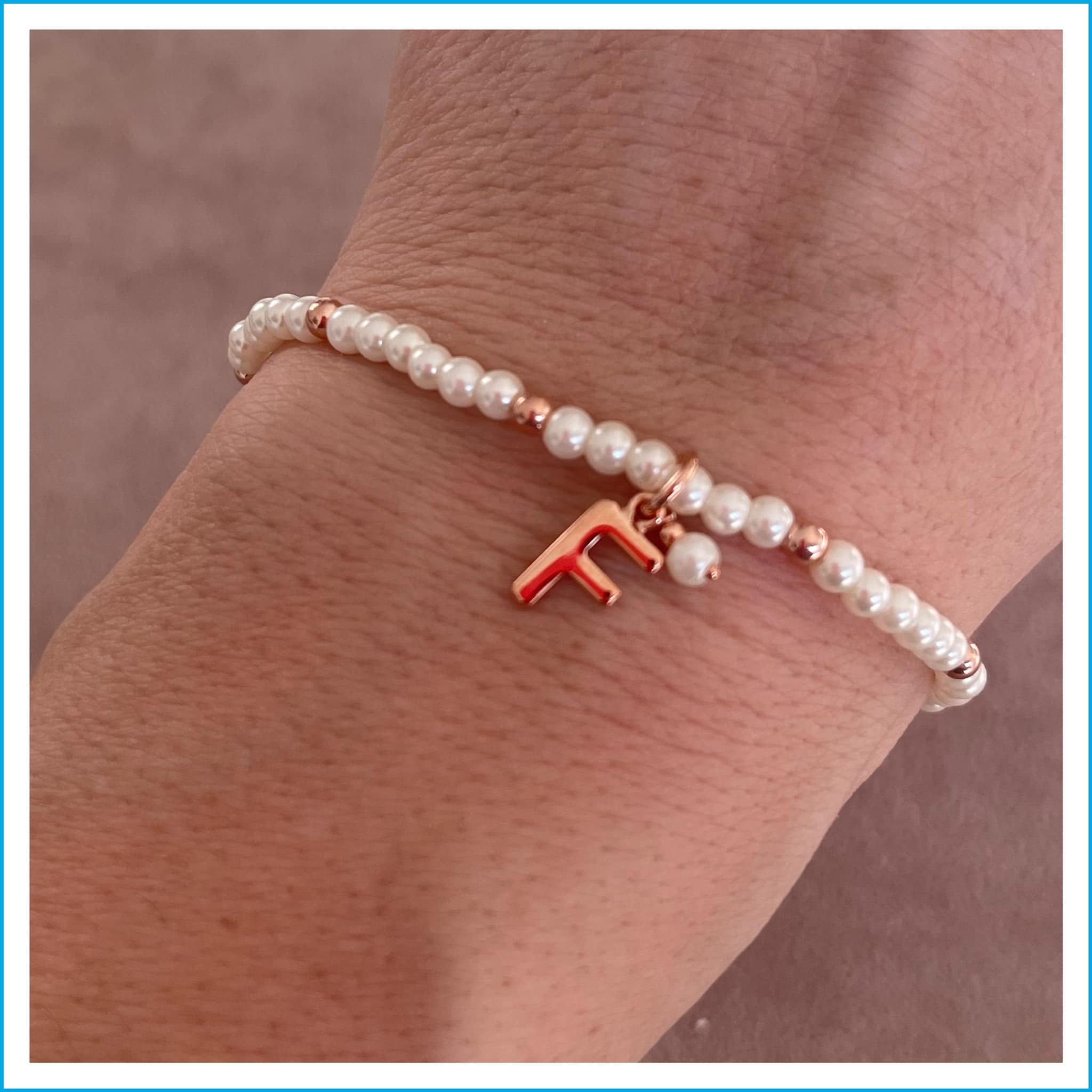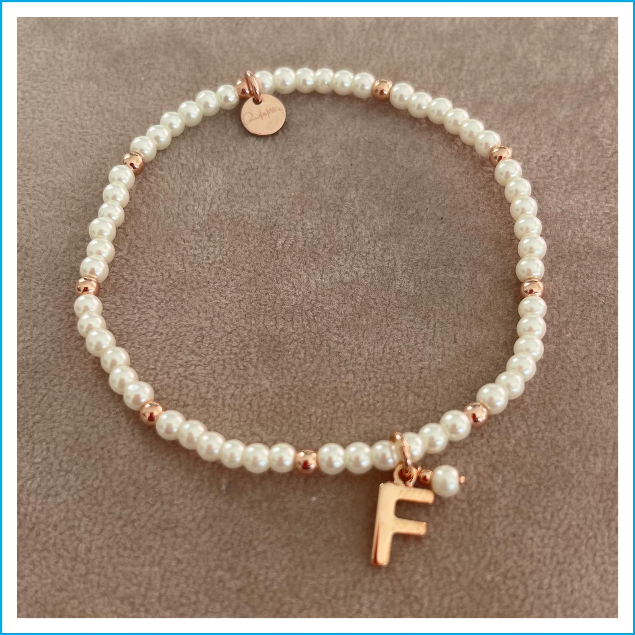 Braccialetto Elastico con Perle e Palline - Lettera F