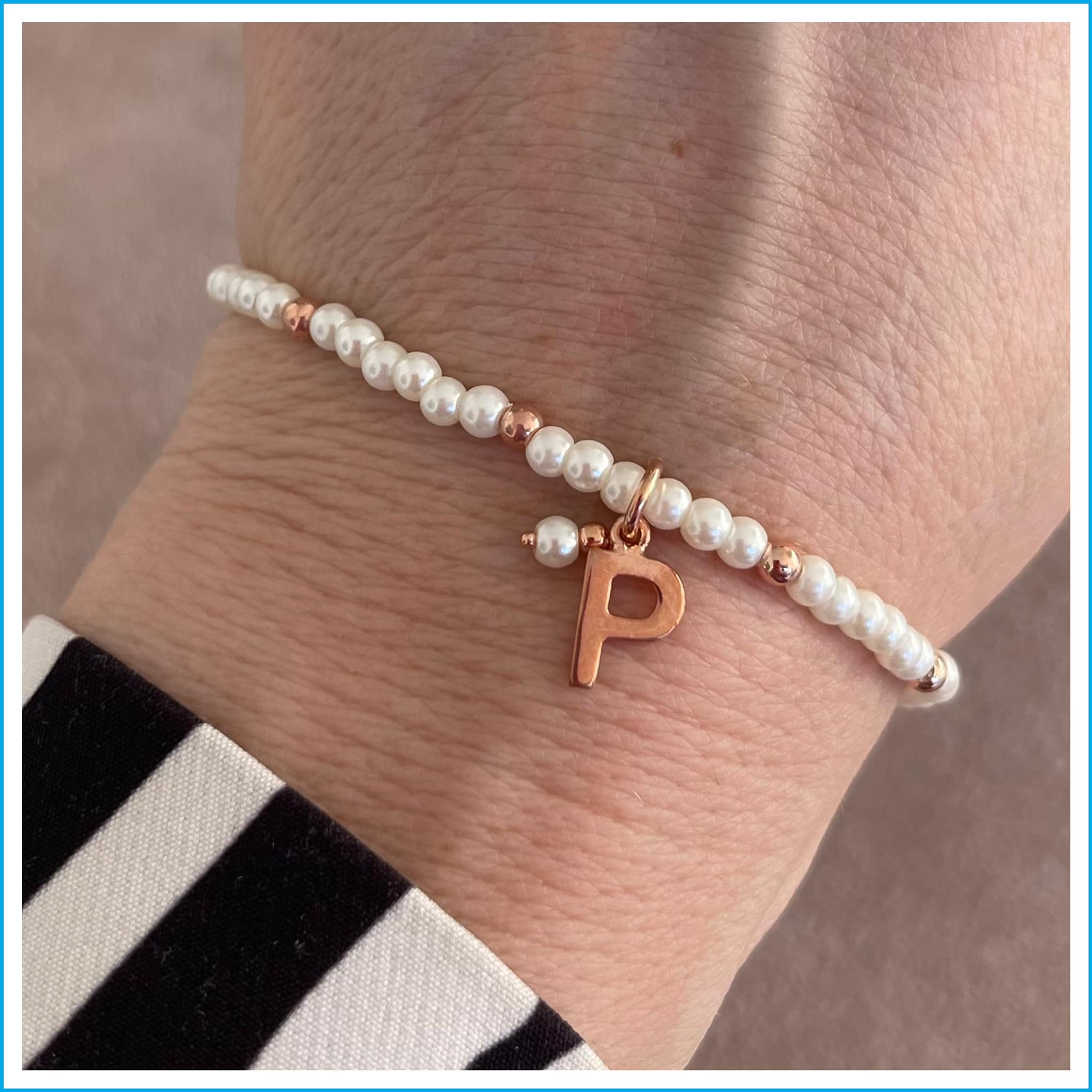 Braccialetto Elastico con Perle e Palline - Lettera P