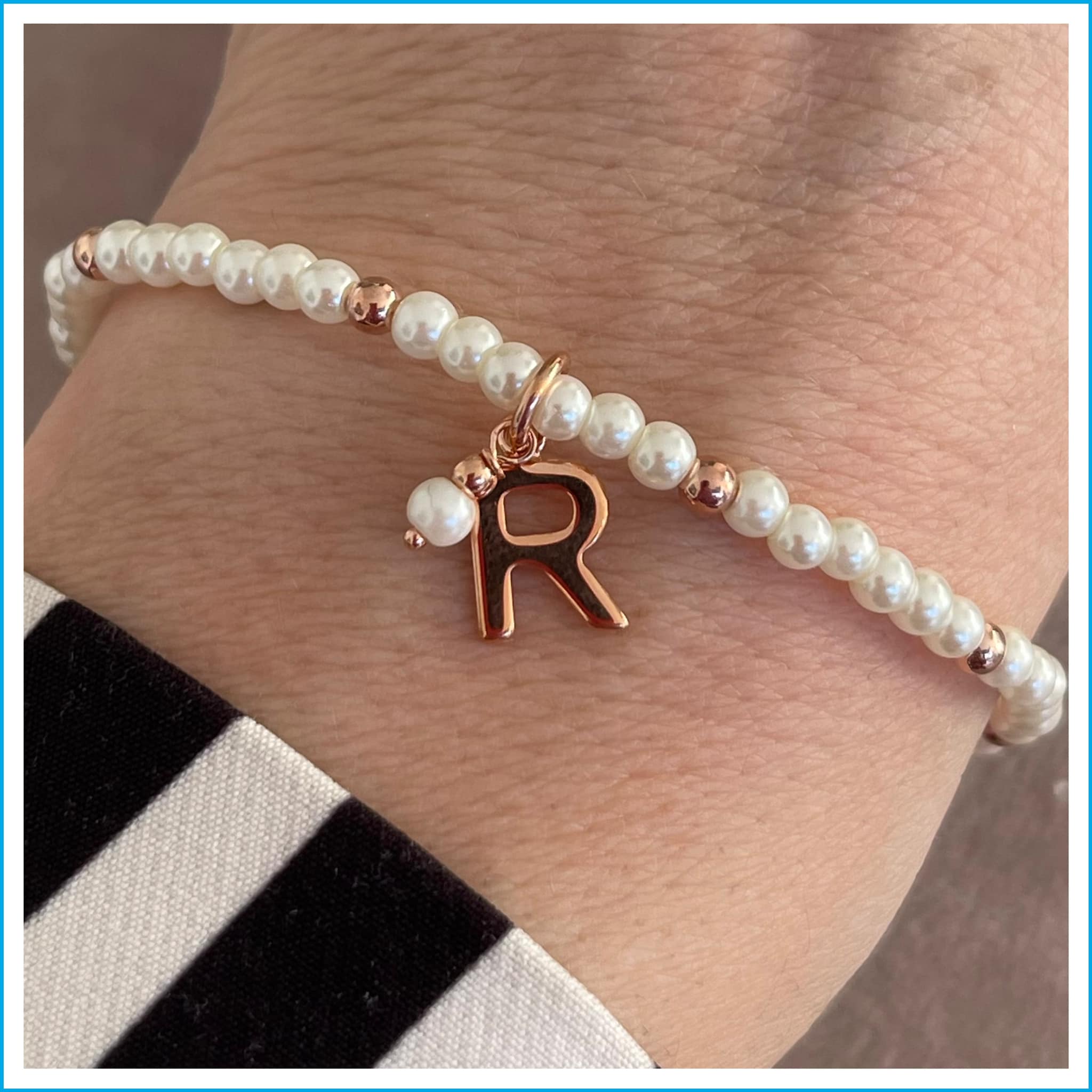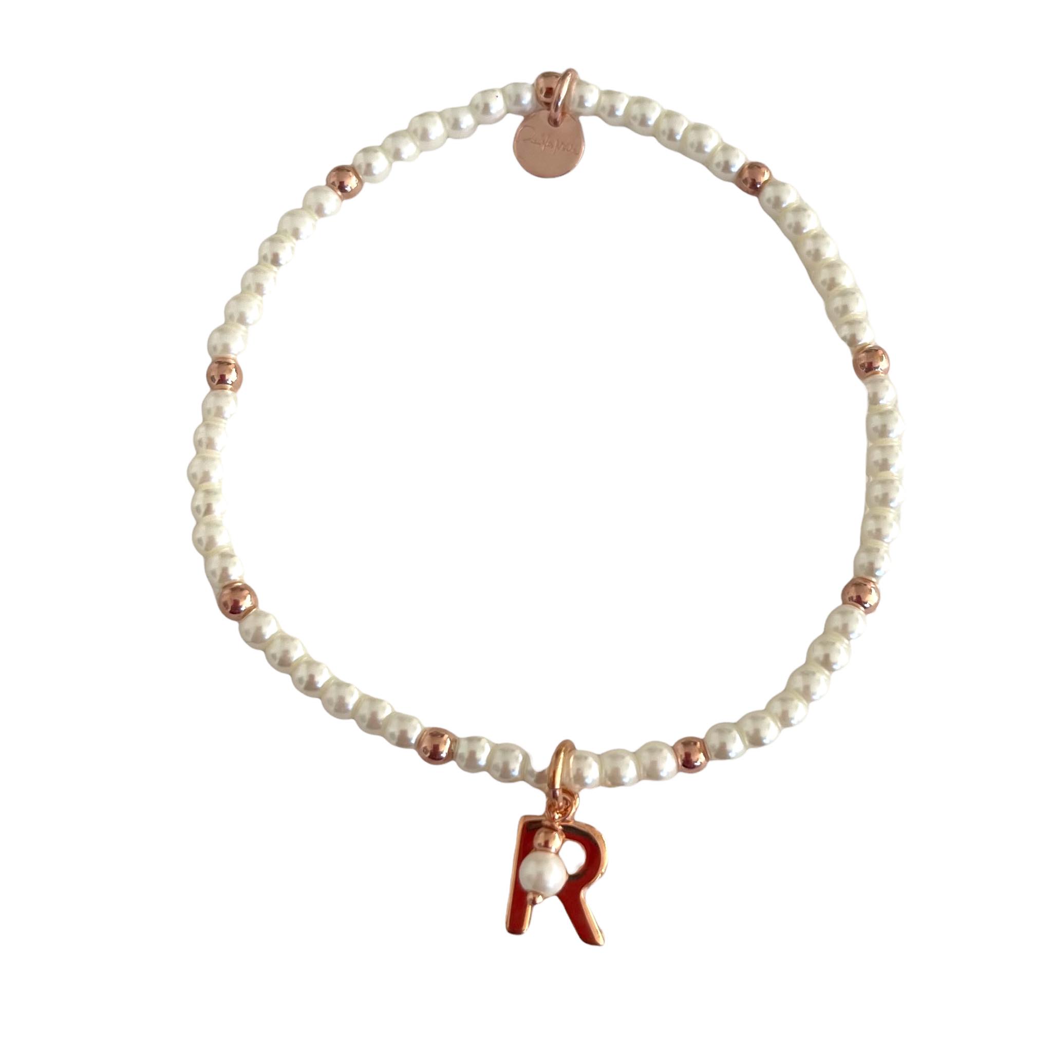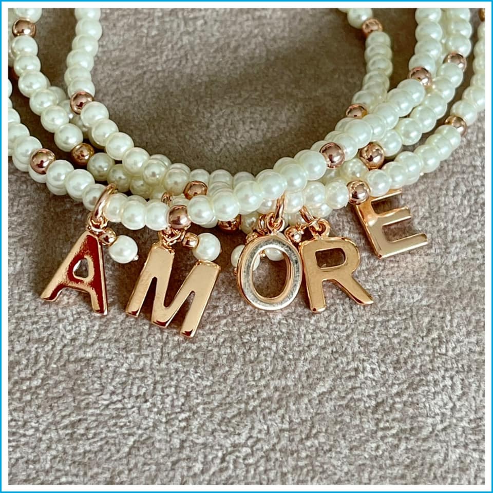 Braccialetto elastico con perle e palline in argento.