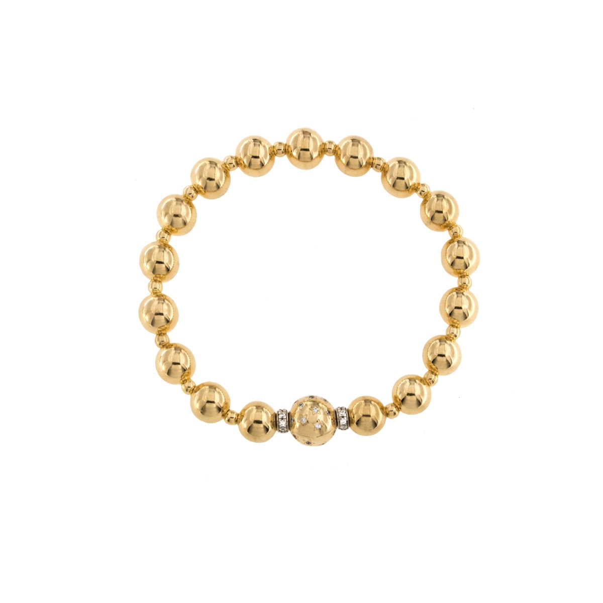Braccialetto elastico con sfere small size e sfera medium size al centro.