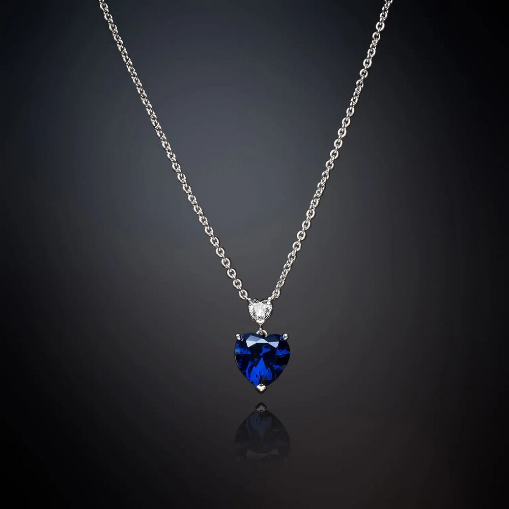 Collana da Donna, collezione Diamond Heart Chiara Ferragni. Collana silver e due zirconi taglio cuore bianco e blu zaffiro nella parte centrale.