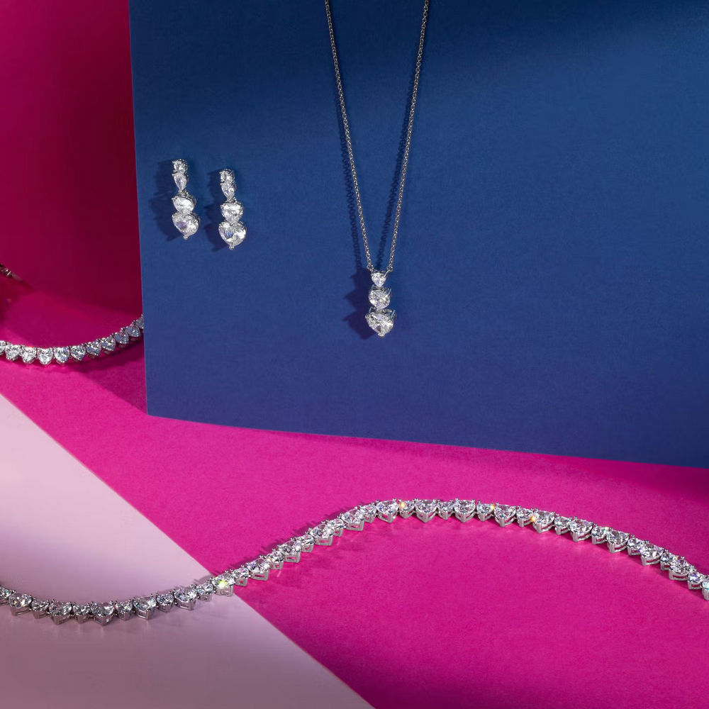 Collana da Donna, collezione Diamond Heart. Zirconi bianchi taglio cuore.