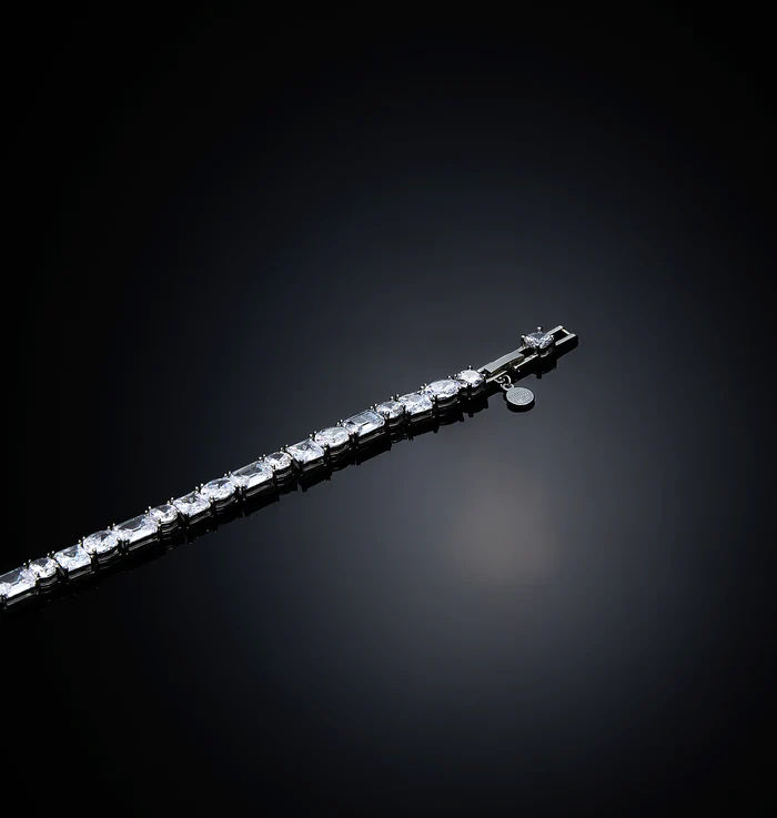 Collana tennis placcato rodio in zirconi luminosi di diversi tagli.