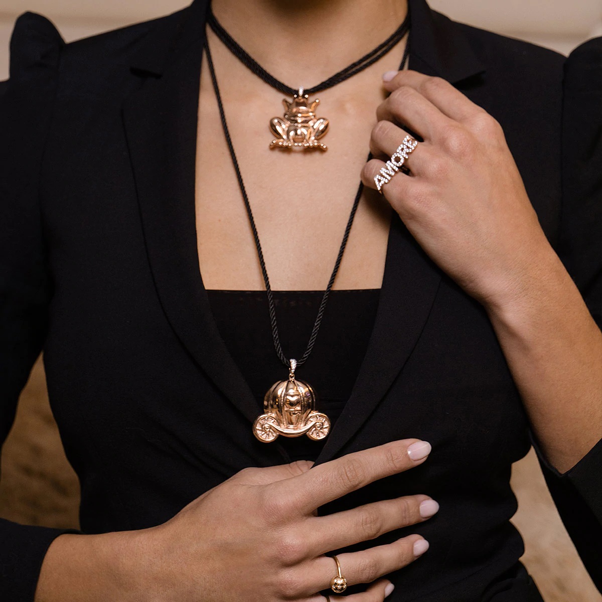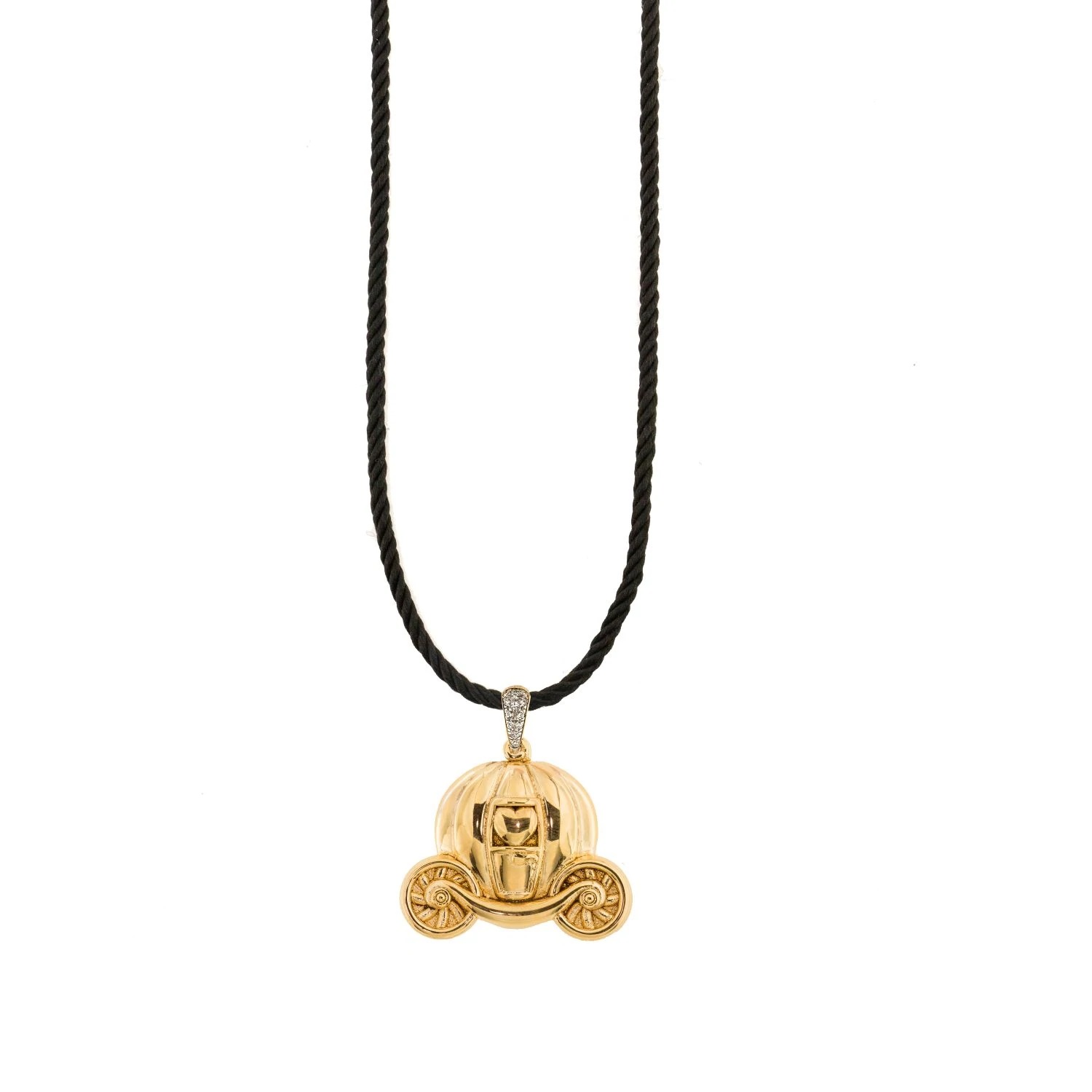 Collana corda torchon lunga 80 cm , contromaglia in zirconi e ciondolo Carrozza BIG.