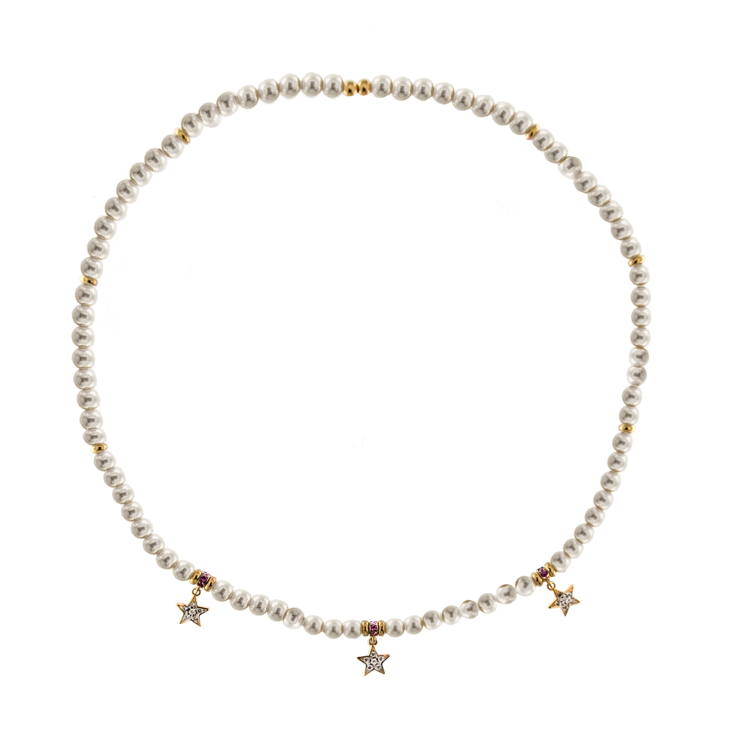 Girocollo elastico perle di conchiglia con tre stelle zirconi bianchi.