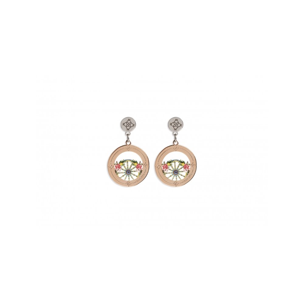 Roségoldene Stahlohrringe mit Sublimation. Ein einzigartiges Juwel mit den klassischen Motiven der sizilianischen Tradition.
