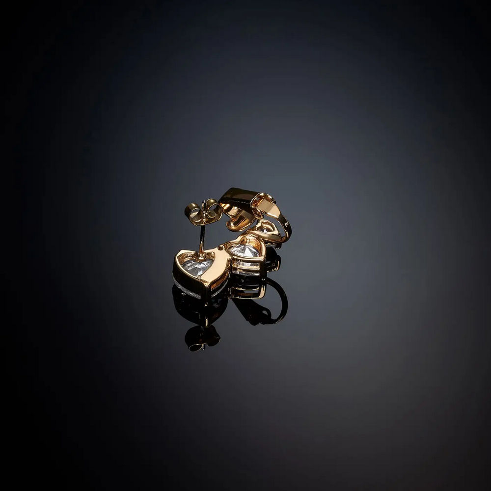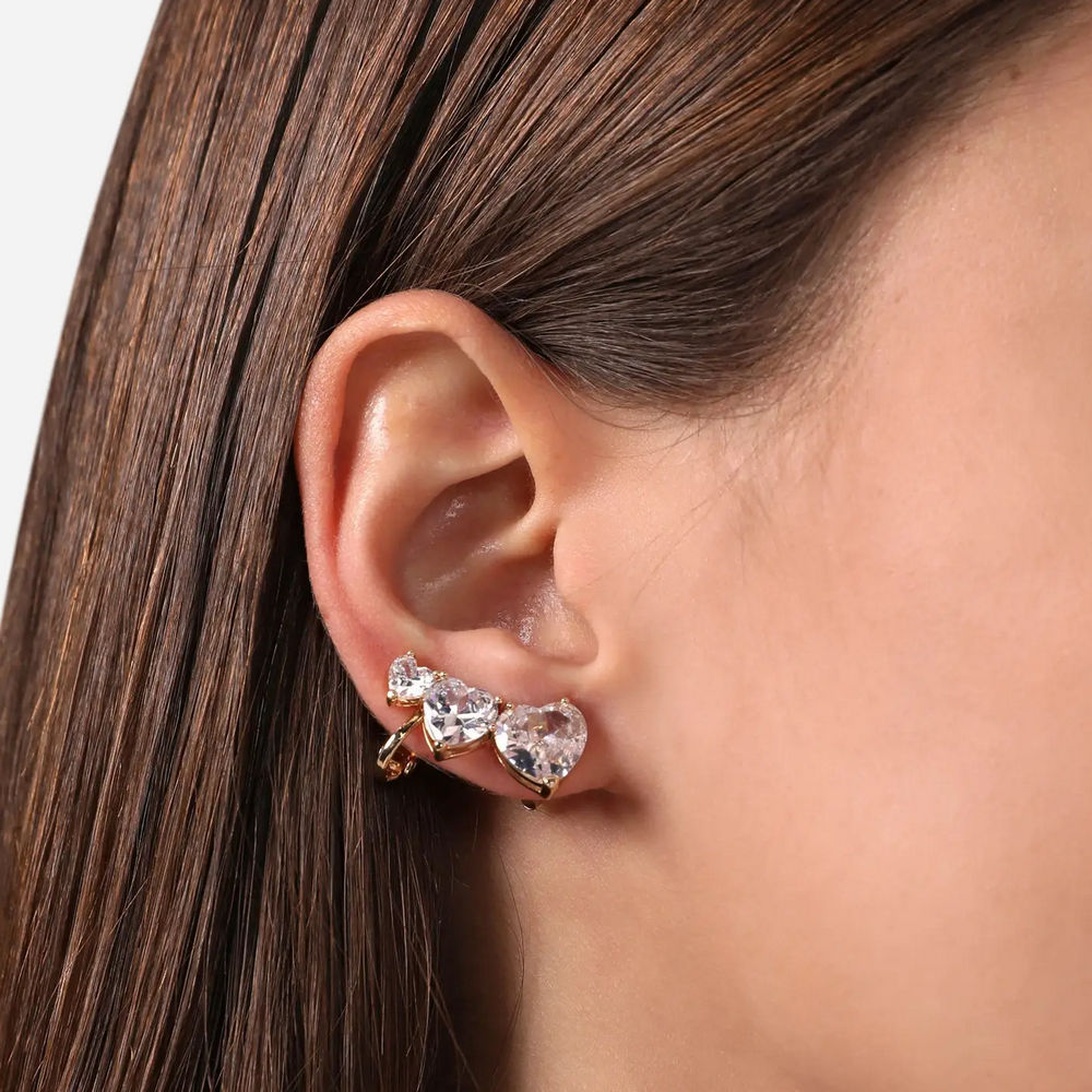 Orecchini da Donna, collezione Diamond Heart Chiara Ferragni. Orecchini placcati in oro giallo 18 kt e con tre zirconi bianchi taglio cuore.