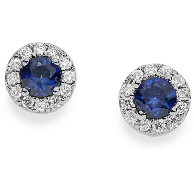 Orecchini in oro 18 kt con diamanti 0.12 ct e zaffiro 0.22 ct