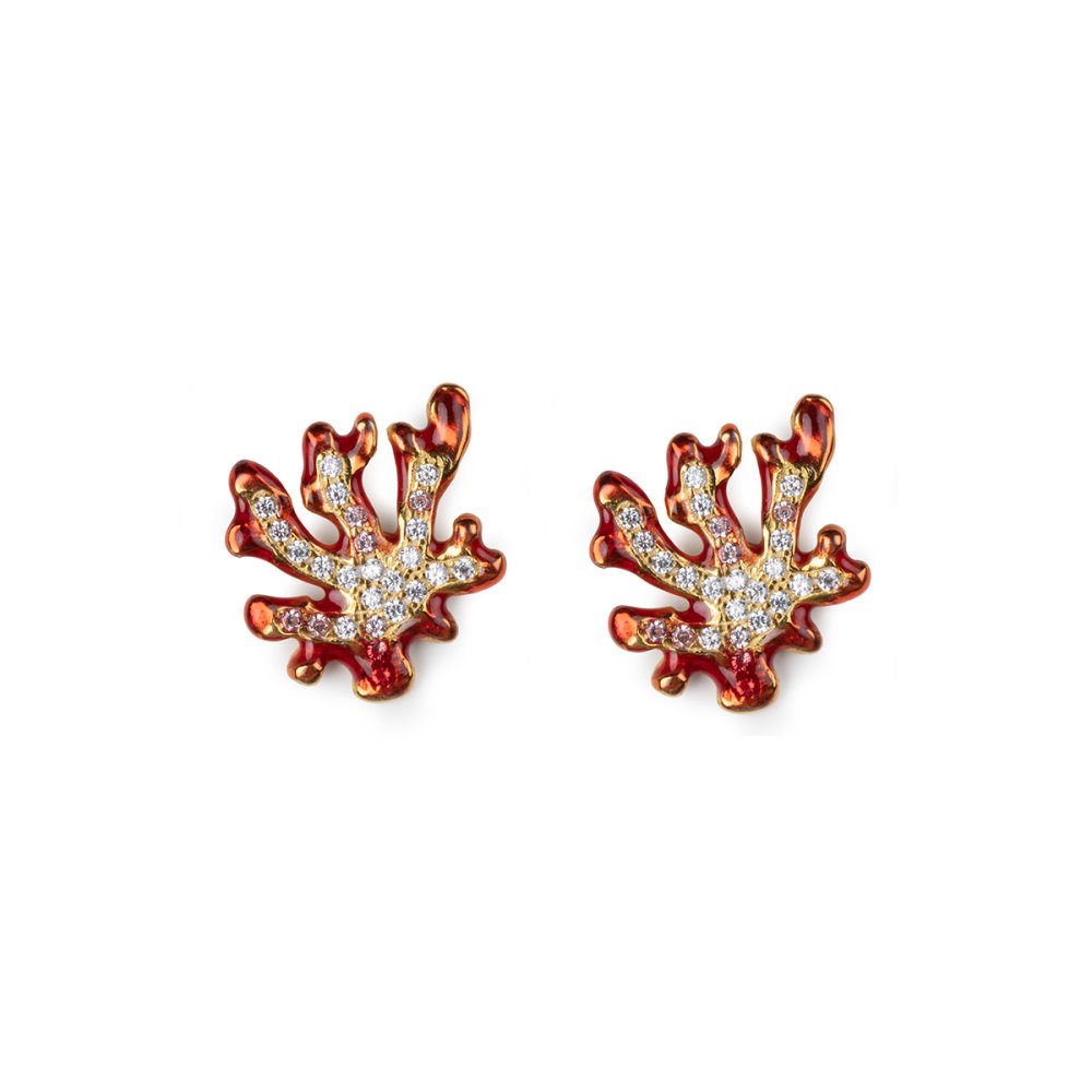 Ihre Seltenheit und Form haben die Koralle kostbar und begehrt gemacht. Sein geheimnisvoller Ursprung inspirierte antike Mythen, sowohl griechische als auch römische, daher galt es schon immer als Glücksbringer, als Symbol für Leben und Regeneration. Der Schatz des Meeres wird hier in einem Paar Ohrläppchen voller Licht und Schönheit gefeiert. Ohrringe aus 925er Sterlingsilber, vergoldet und emailliert, mit Zirkonia, Code 20000580