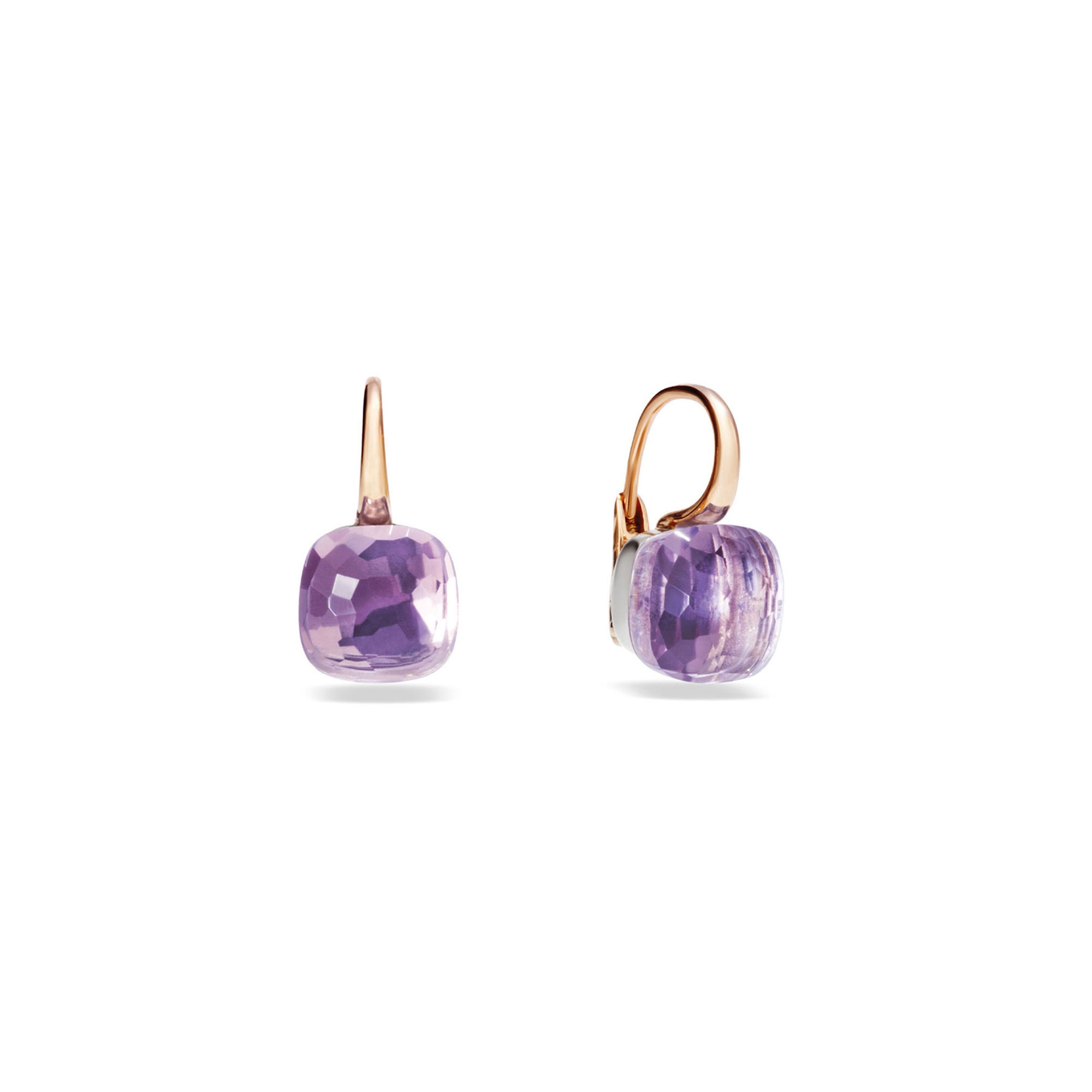 Nackte klassische Ohrringe in Pink Roro mit weißgoldener Lünette und facettierter Rose de France