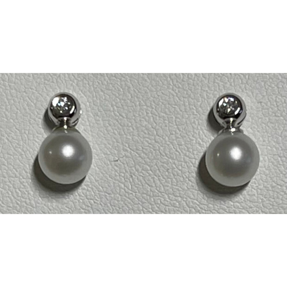 Orecchini in oro bianco con diamante e perla fresh water ø 8-8.5