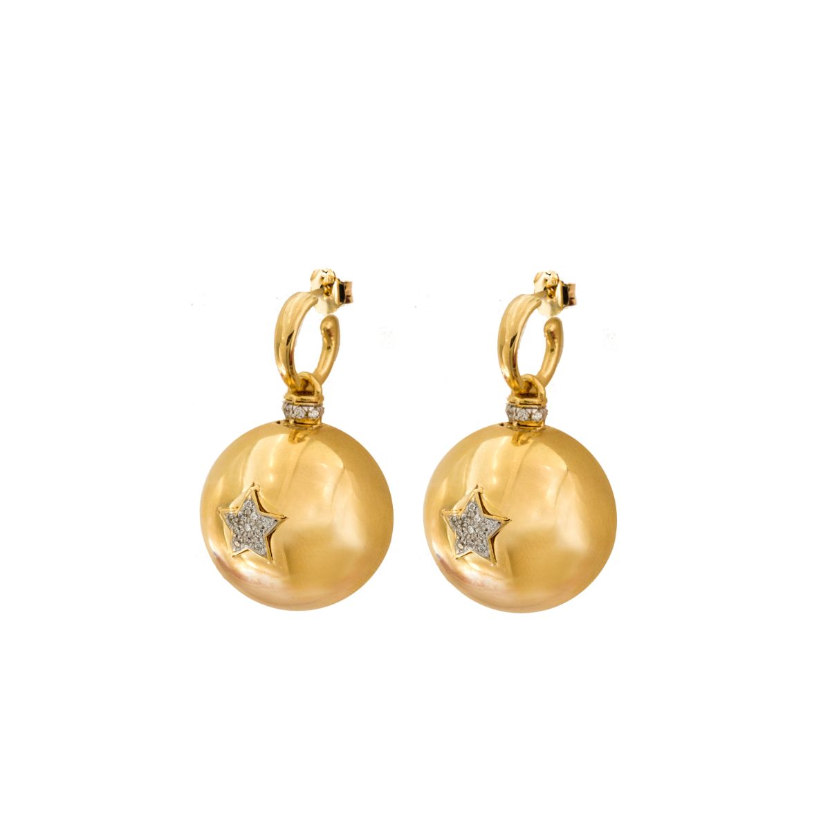 Argento 925, galvanica oro 18 kt e zirconi. Diametro sfera: 2cm Nichel free Fatto in Italia, con amore