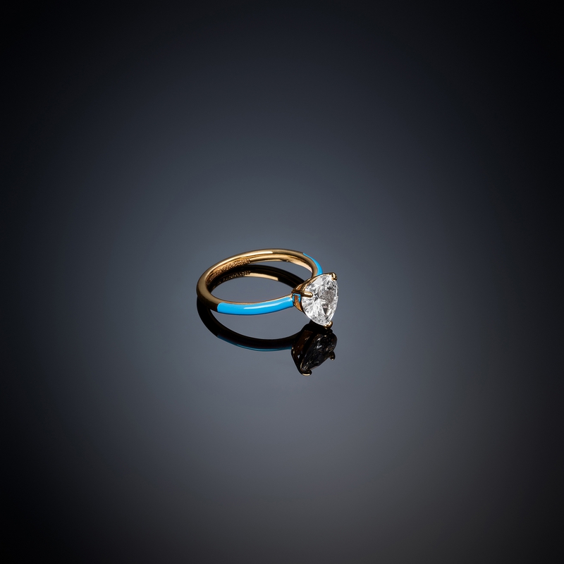 Anello placcato in oro 18 Kt con zircone bianco taglio cuore e smalto azzurro.