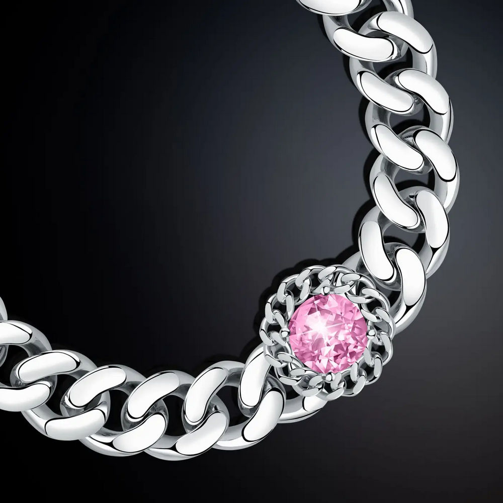 Bracciale da Donna, collezione Chain Chiara Ferragni. Bracciale catena groumette silver con zircone rosa centrale.