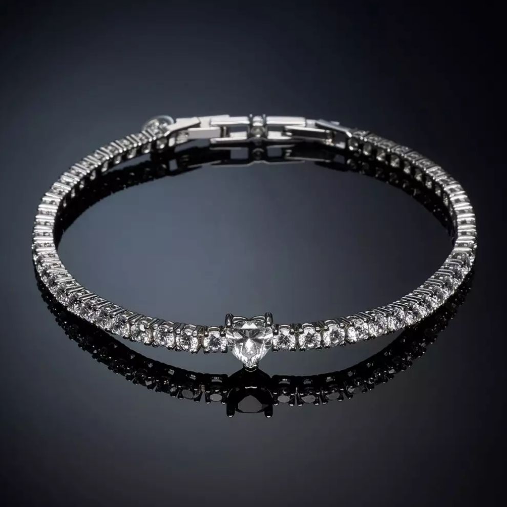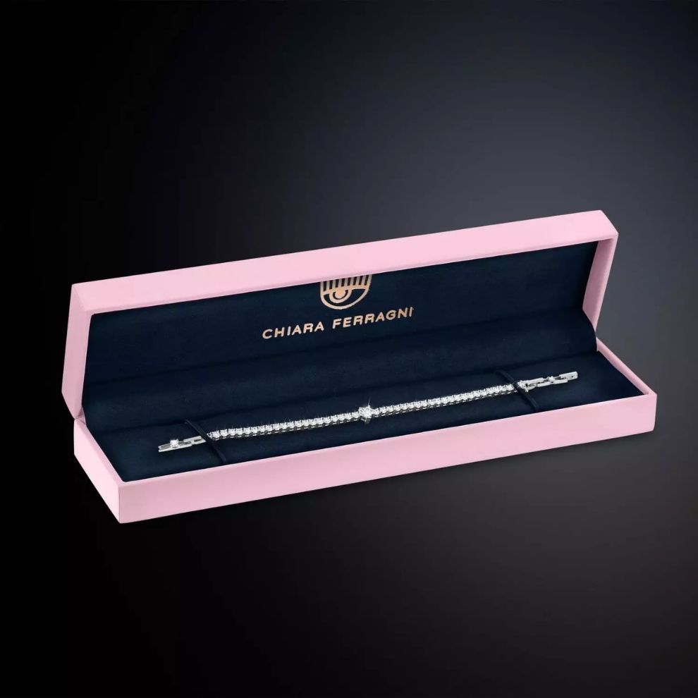 Bracciale da Donna, collezione Diamond Heart Chiara Ferragni. Bracciale tennis con zirconi bianchi e uno zircone taglio cuore bianco nella parte centrale.