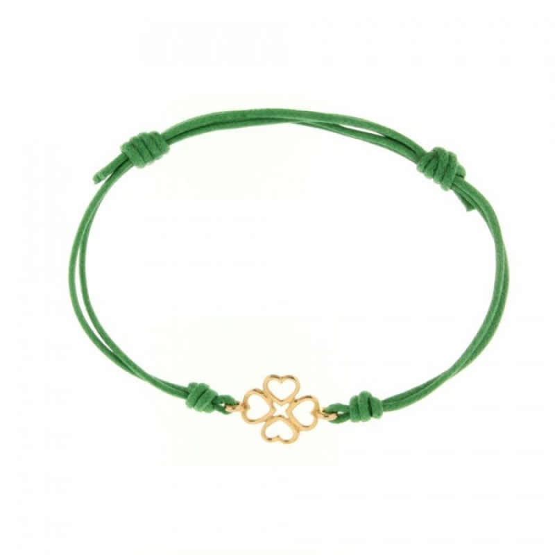 Bracciale con cordino e simbolo Quadrifoglio a filo in oro rosa