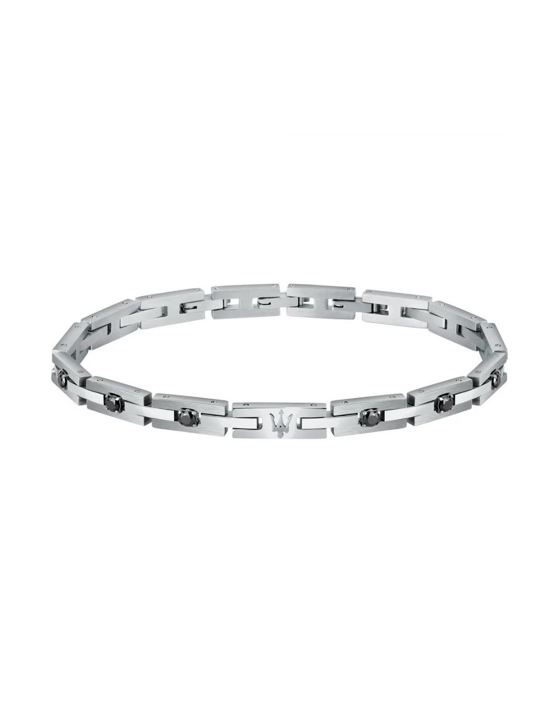 realizzato in acciaio anallergico ed impreziosito con zirconi neri.