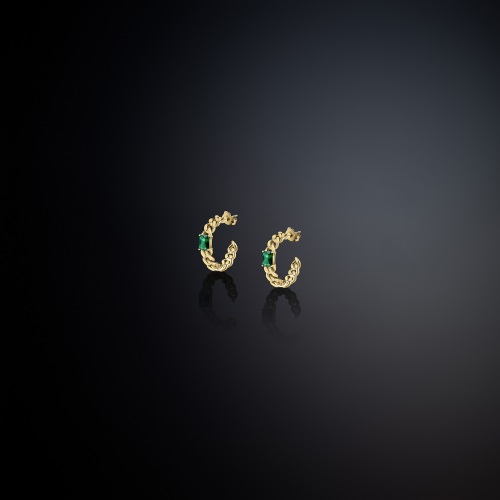 Orecchini da Donna, collezione Chain Chiara Ferragni. Orecchini catena groumette placcati oro giallo 18 kt e zircone verde smeraldo.
