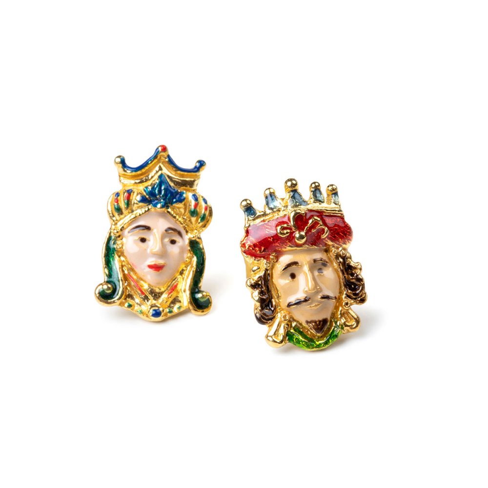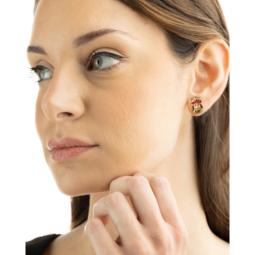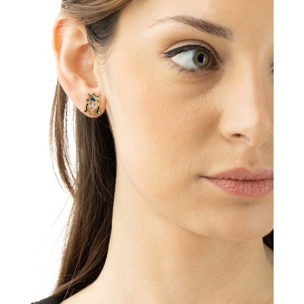 A small gift of love, which talks about an ancient Sicilian legend that mixes passion and feeling. The meeting between an Arab and a girl from Palermo, who cut off his head to keep her beloved always with her. A symbol of the island's artistic tradition - now famous throughout the world - in a special jewel. Earrings in gold-plated 925 sterling silver and enamel. Code 20000557