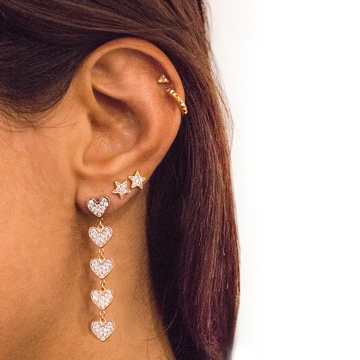 Coppia di orecchini con soggetto 5 cuori di zirconi.