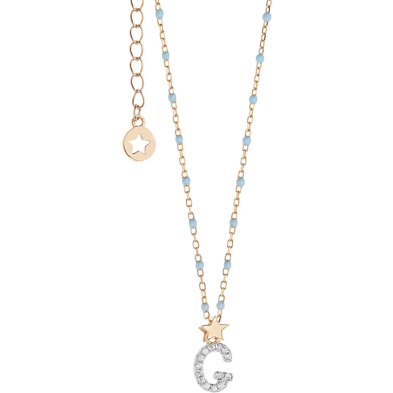 Pendant in the shape of the letter G 1 cm long with pave 'of white crystals.