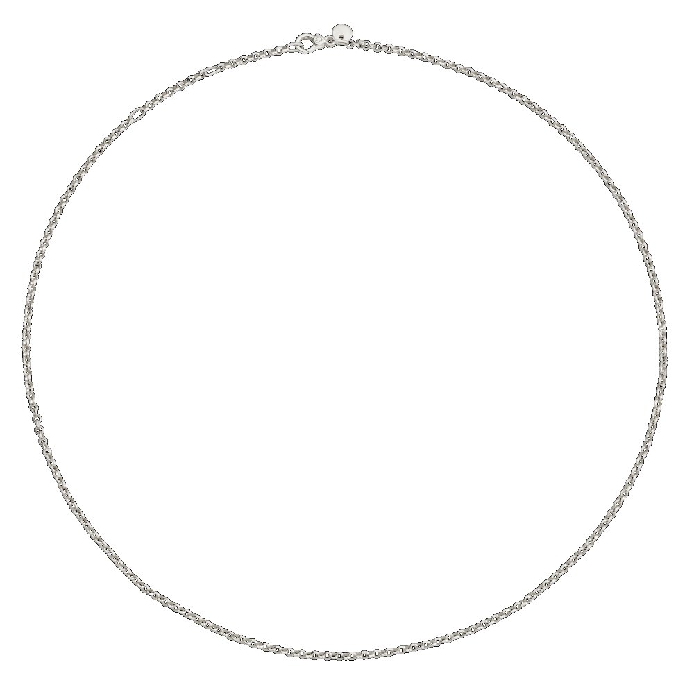 Effortless, da indossare da sola o per layering personalizzati, la collana Rolò con finitura diamantata, è in argento e ha una piastrina con impresso il logo.