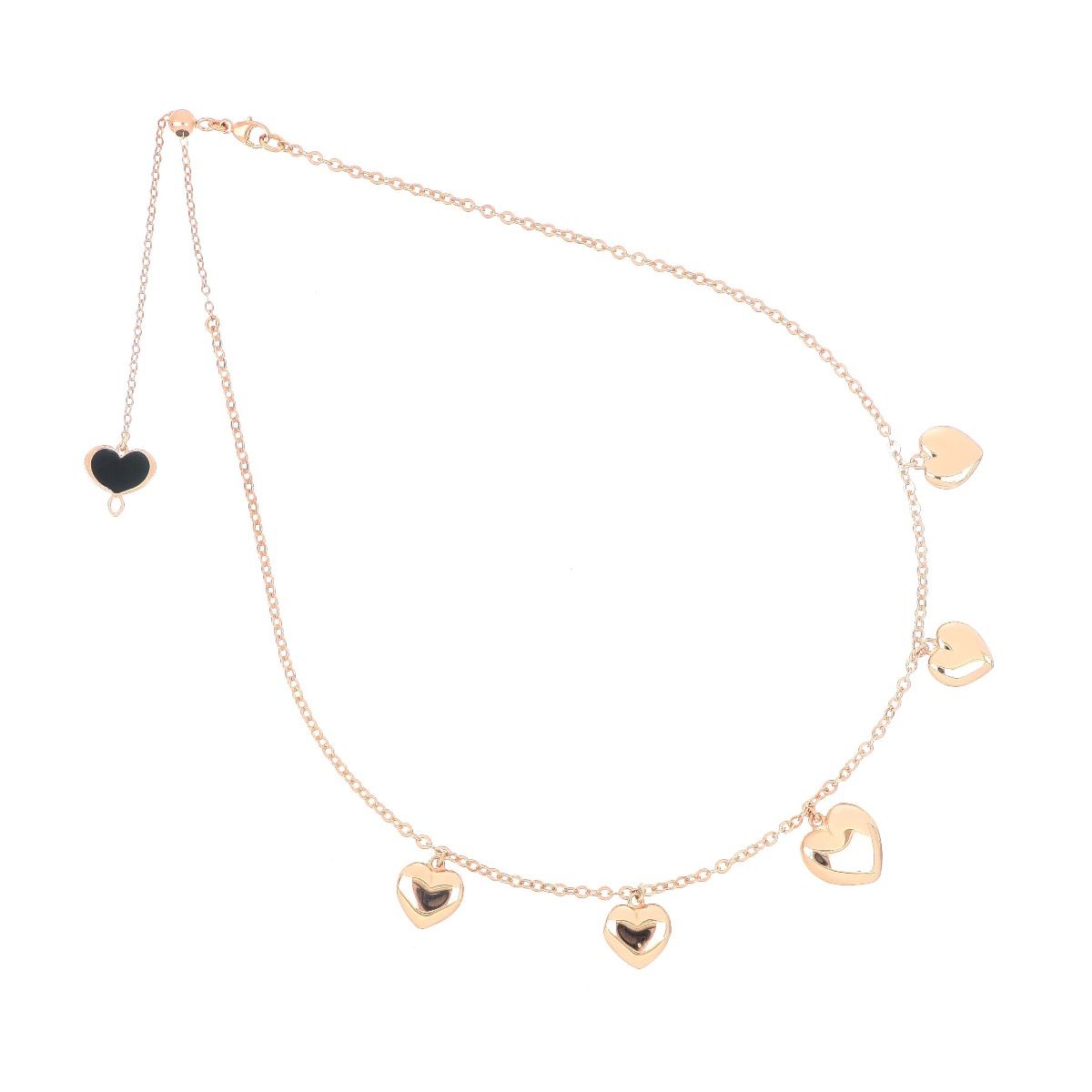 Girocollo della Collezione Cuore Borbonico con cinque cuori tridimensionali realizzato interamente in argento 925 con galvanica oro rosa ad alto spessore e resistenza con la tecnica dell'elettro-formatura.