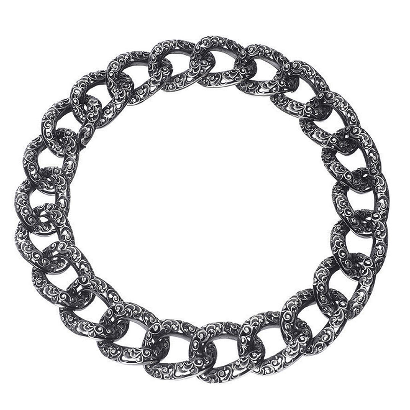 Collana in argento brunito lavorato a mano.Come ogni gioiello Mariaeluisa è unico e particolare per le donne che amano distinguersi. Lo stile damascato lavorato a mano è la caratteristica distintiva di questo prodotto inimitabile e unico, come te.