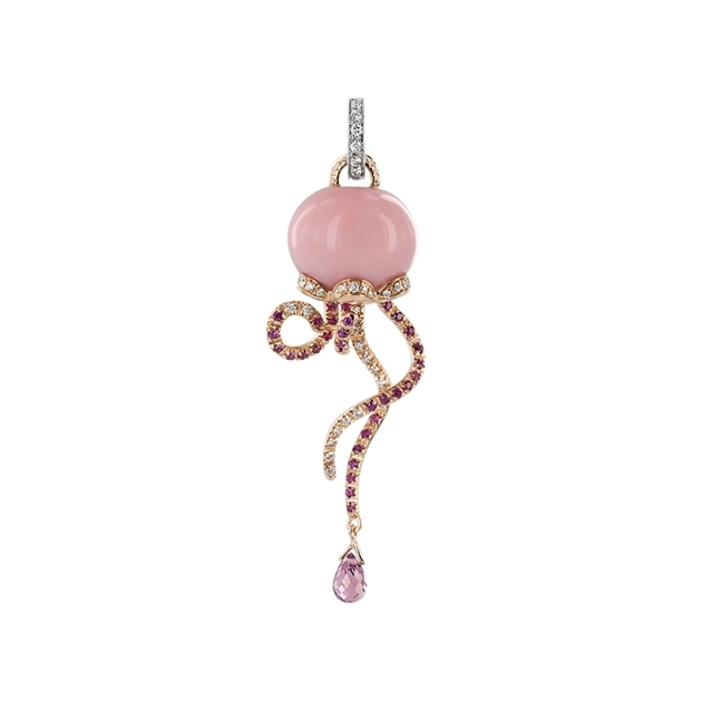 Medusa pendant in 9.9 g rose and white gold, 0.36 ct diamonds, 1.10 ct pink sapphires and pink opal