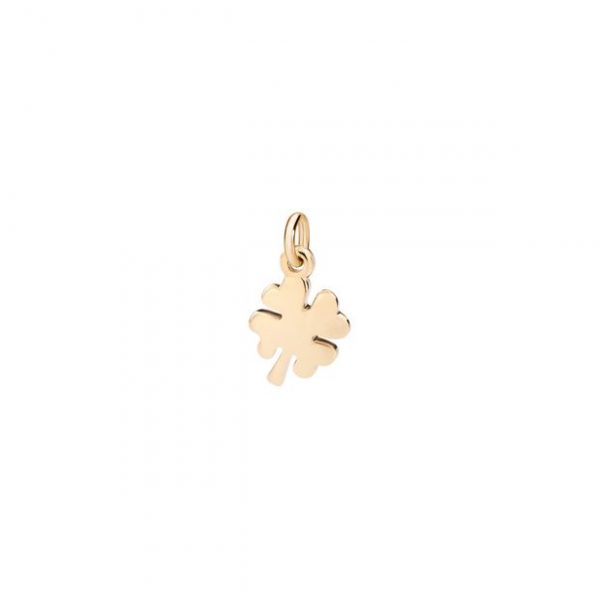 Mini ciondolo quadrifoglio in orogiallo 18 carati. Questo ciondolo è compatibile solo con i bracciali e le collane della collezione Mini Granelli.
