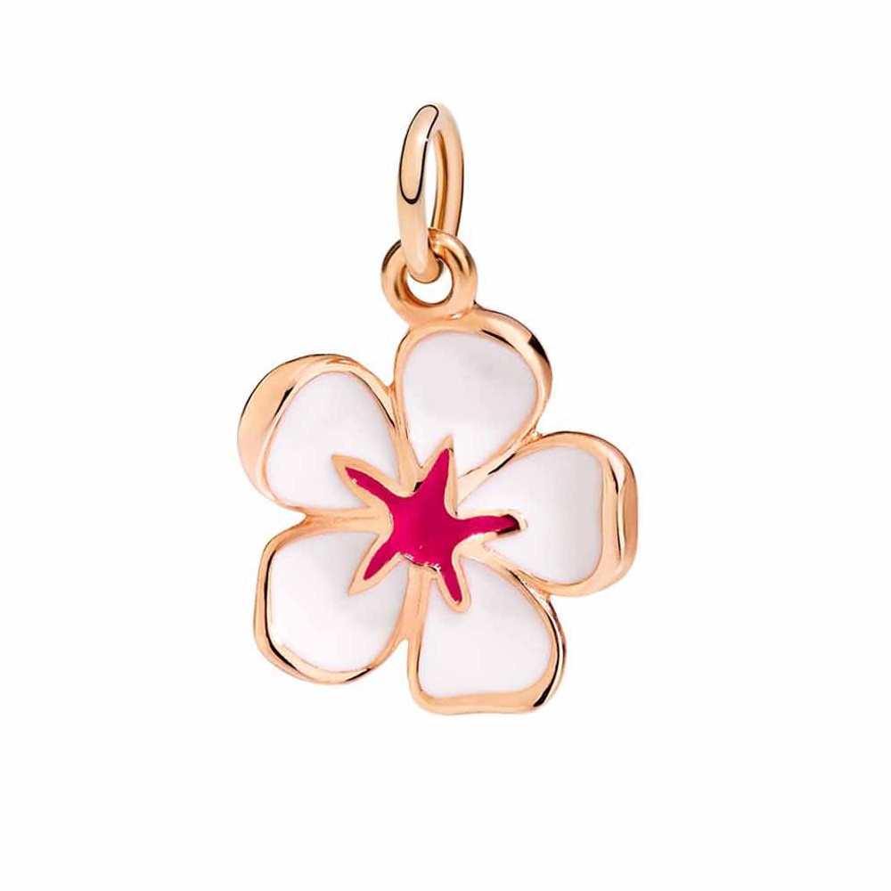 Ciondolo Fiore Di Ciliegio in Oro Rosa 9 kt e Smalto Bianco.