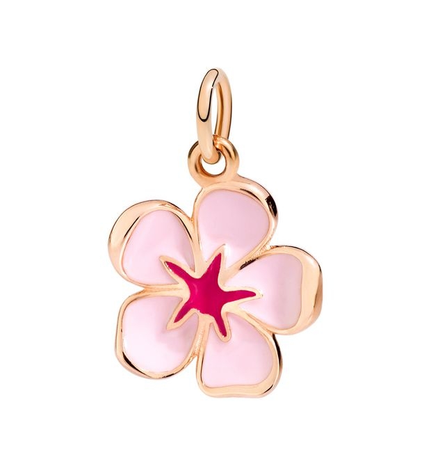 Ciondolo Fiore Di Ciliegio in Oro Rosa 9kt e Smalto Rosa.