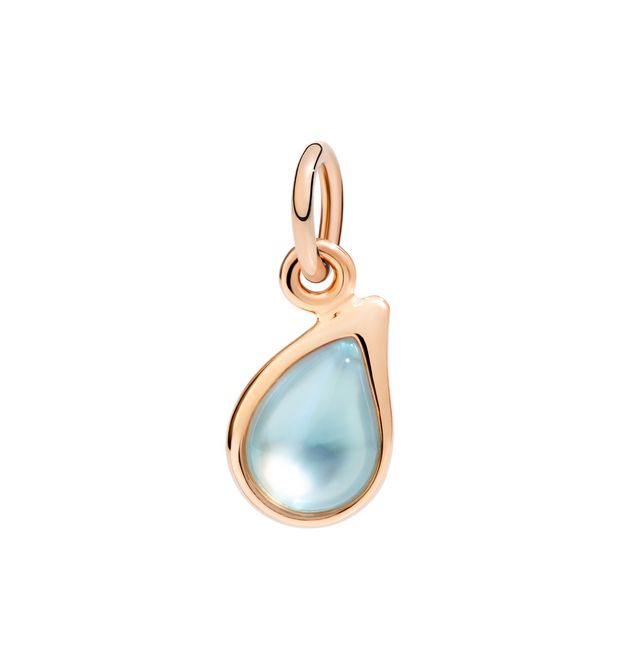 Ciondolo in oro rosa 9kt, vetro riciclato, madreperla e incisione in smalto turchese. nappina e cordino blu sfumato inclusi.