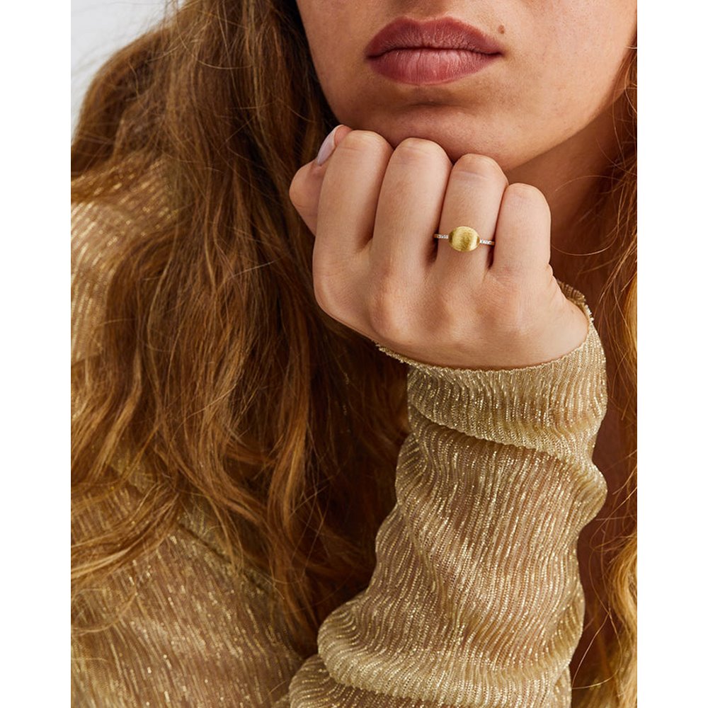 "Dancing Elite" Ring With Hand-Engraved Gold Boule and Pavé Diamonds (Medium)