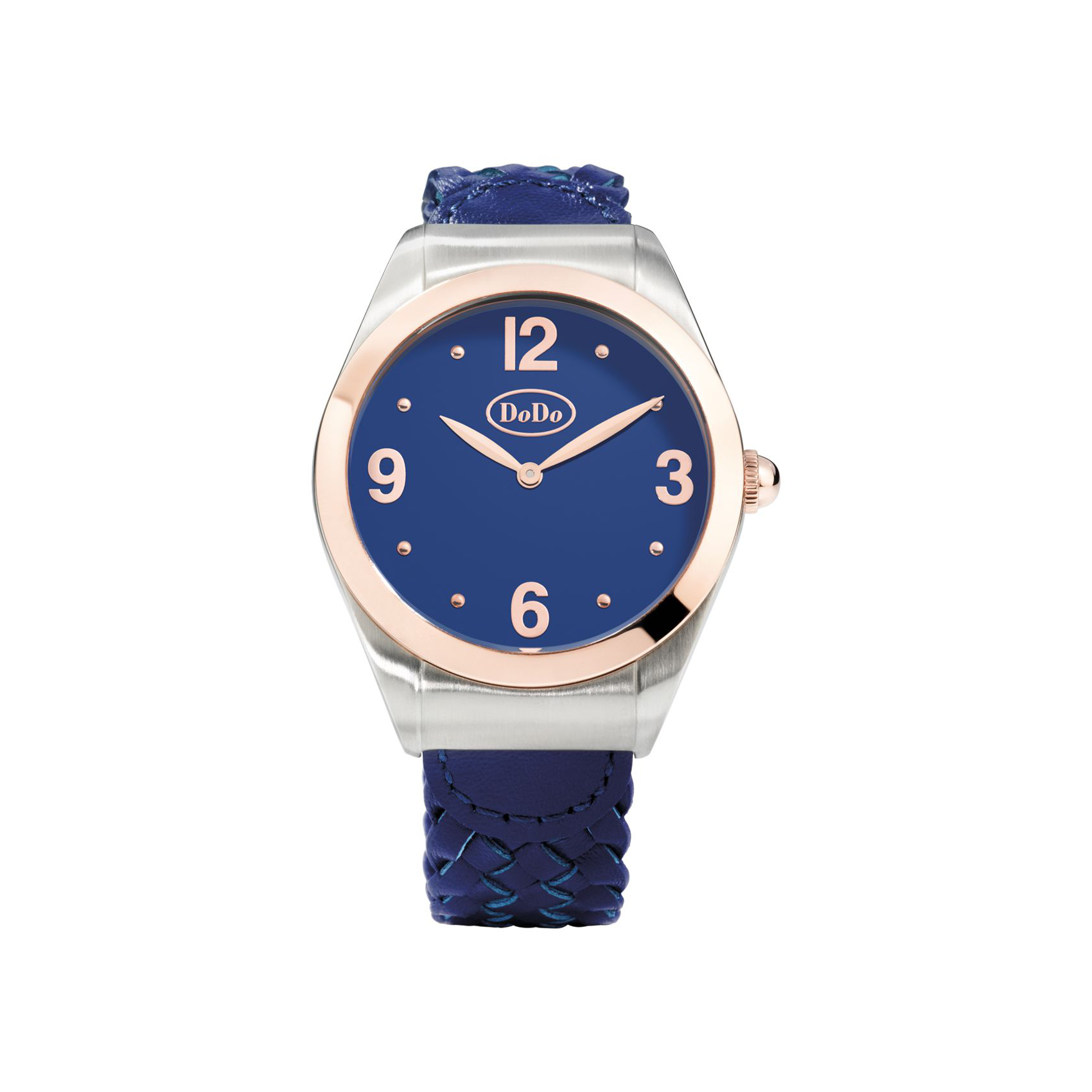 Cassa in acciaio diametro 37 mm con lunetta e corona in PVD color oro rosa.