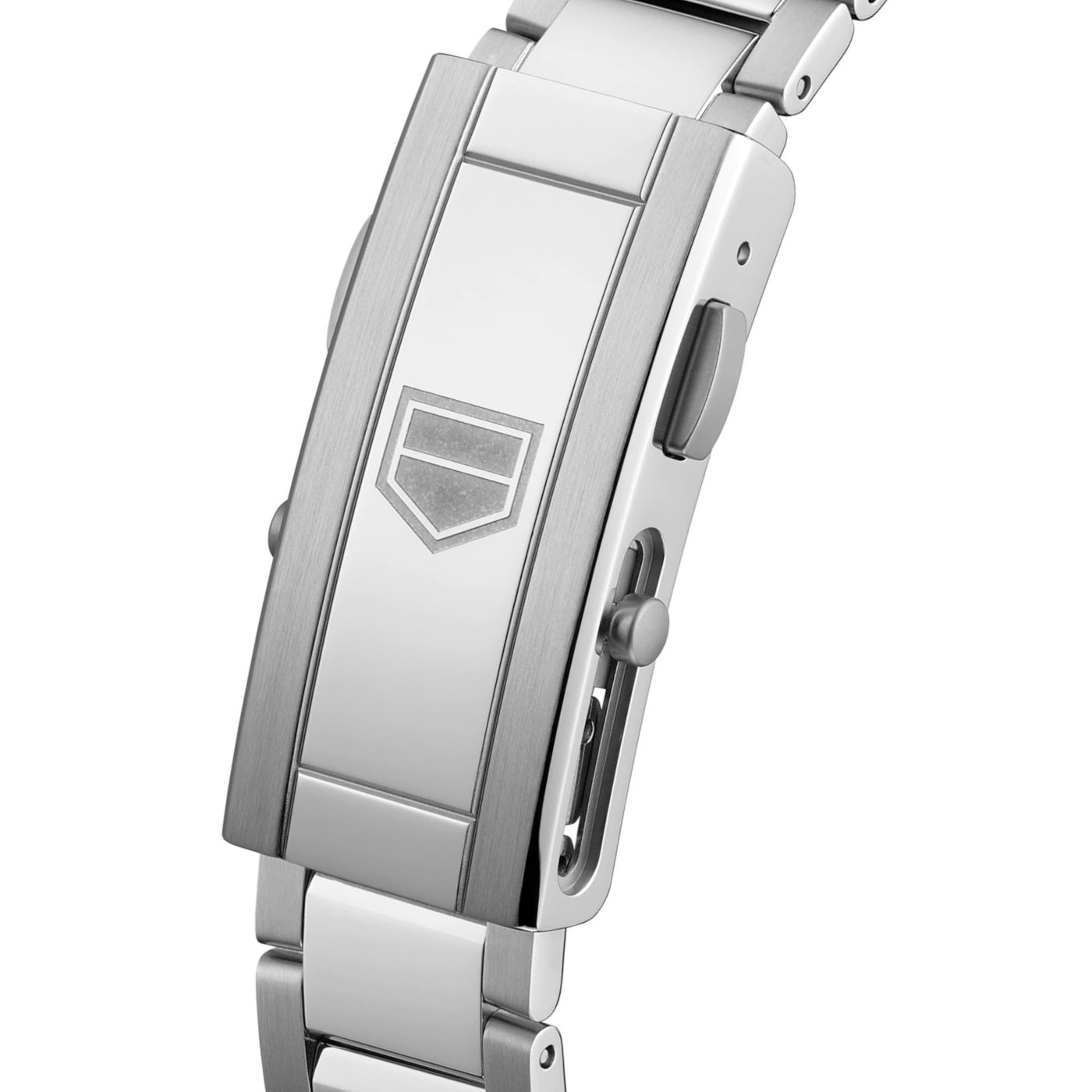 Fibbia pieghevole in acciaio con pulsanti.