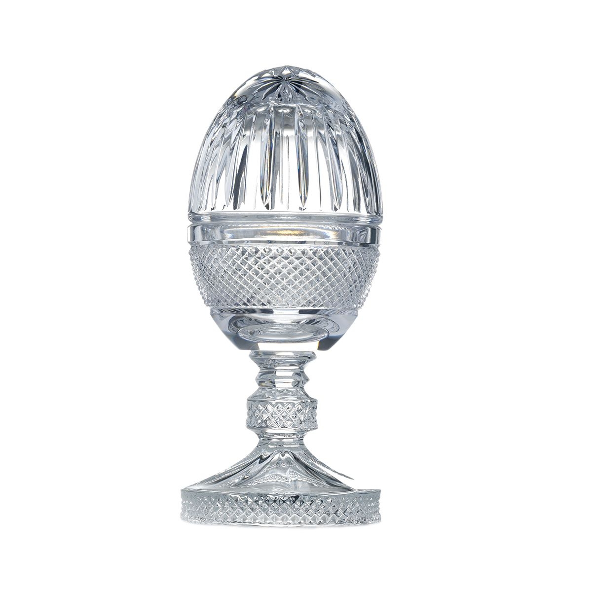 L’uovo Hermitage in cristallo trasparente a si mostra con un design originale e raffinato che unisce la bellezza del cristallo soffiato a bocca, alla funzionalità, grazie alla possibilità di apertura e inserimento di oggetti preziosi al suo interno.
