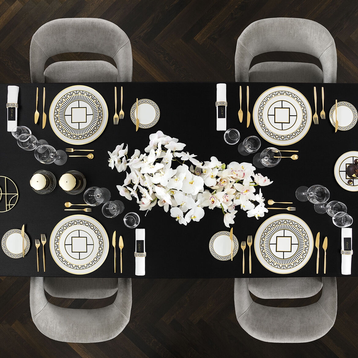 Metrochic Piatto da Dessert e da Colazione, Bianco-nero-oro Set 6 Pezzi