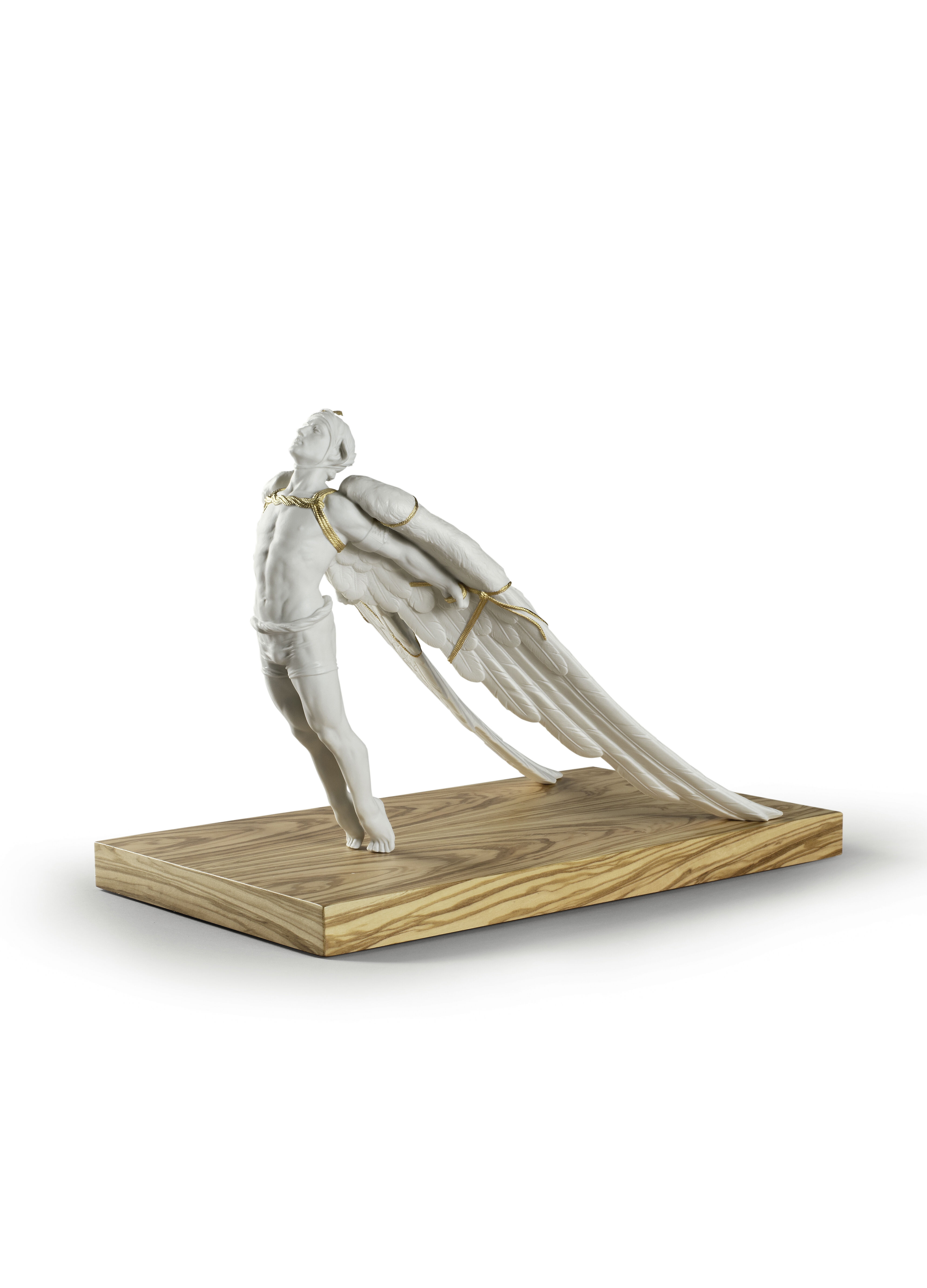 Una figurina in porcellana opaca ispirata a uno dei più affascinanti eroi della mitologia greca, Icaro, rappresentazione dell'umano spirito di libertà, sempre pronto e voglioso di superare i propri limiti.