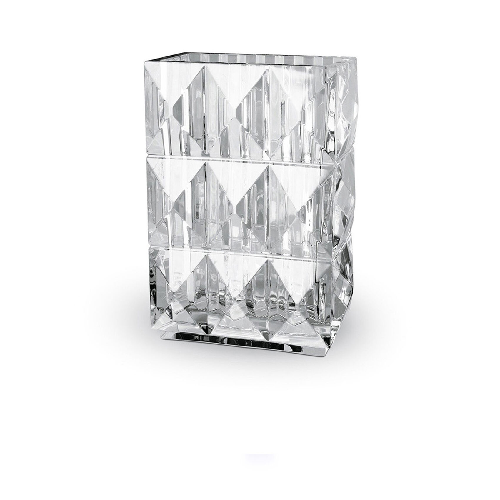 La luce, interagendo con il cristallo, crea un incredibile, quasi psichedelico, effetto ottico che scintilla luminoso e risplende fulgido. Traendo ispirazione dal design del periodo Art Deco, questa superficie in cristallo dal taglio sontuoso diffonde i riflessi del cristallo. Gli impercettibili gradienti dei precisi tagli geometrici incarnano la raffinata lavorazione artigianale di Baccarat: la superficie tridimensionale è composta da fogge piramidali con un motivo a cannoncino verticale nella parte interna. Il nome Louxor deriva dal famoso sito archeologico egiziano. Disegnato per Baccarat da Thomas Bastide, il candeliere e l'obelisco Louxor appartengono alla stessa raffinata collezione.