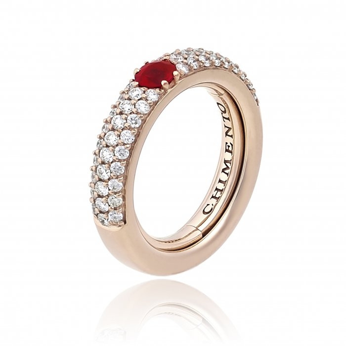 Anello oro rosa con brillanti bianchi br 0.68 e rubini br 0.30